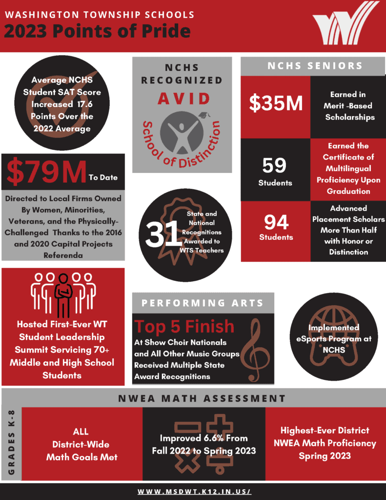2023 Points of Pride Date: July 21, 2023 372 Views share 0 0 0 As we embark on a new school year, we are proud to share the points of pride below from the 2022-23 school year. These achievements are a testament to the dedication of our Washington Township students, teachers, and families.