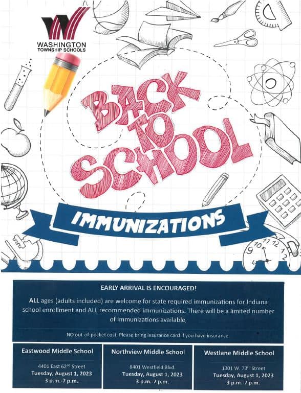 Back to School Immunizations Date: July 20, 2023 270 Views share 0 0 0 Please see information below regarding the Washington Township Back to School immunization clinics on August 1.