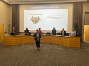 During the “School Spotlight” segment of the School Board meeting, representatives from Hilltop Preschool (soon to be the Early Learning Center) and the True North Academy community were recognized.