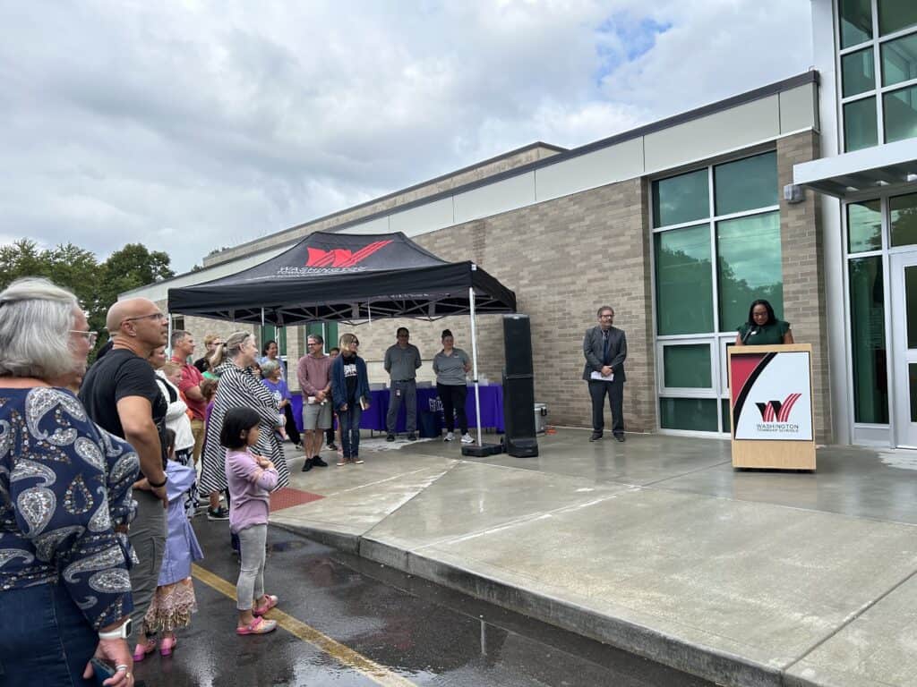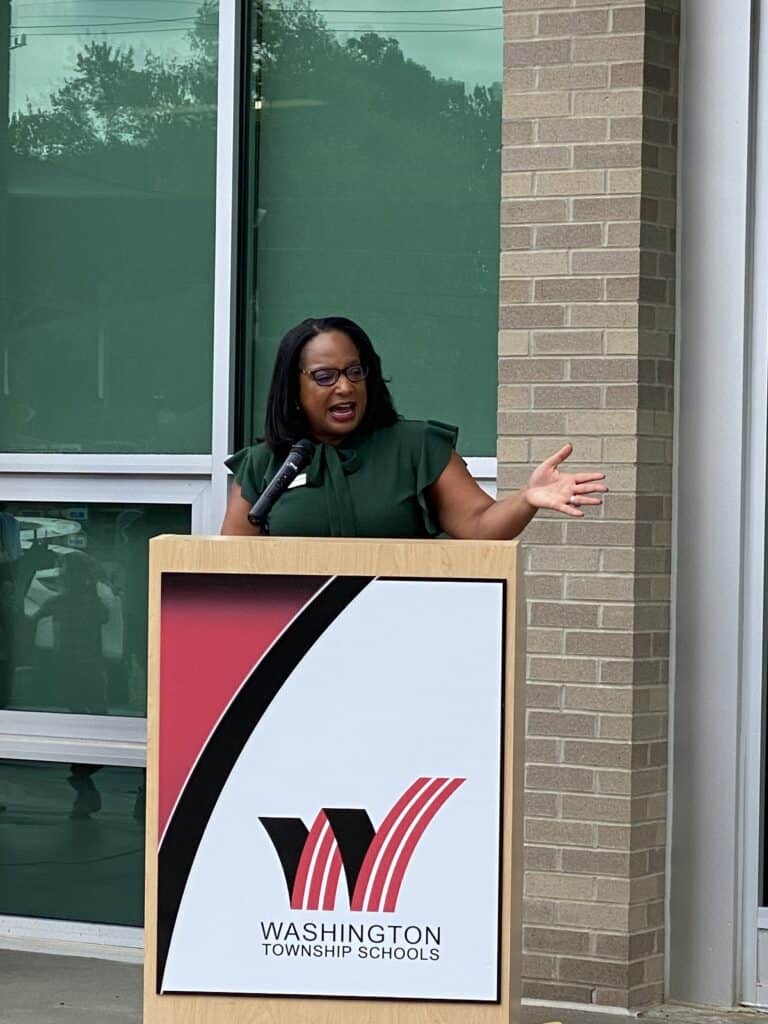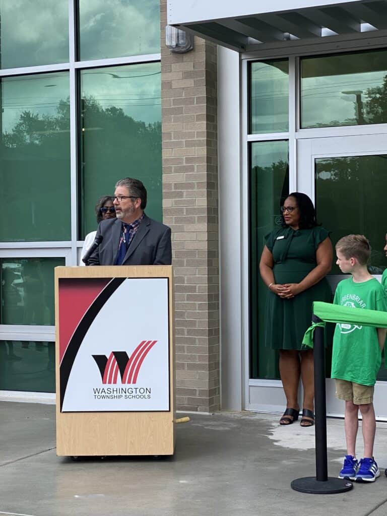 September 7, 2023 marked the rededication of Greenbriar Elementary. The Ribbon Cutting ceremony celebrated the extensive updates that have been made to this facility thanks to community support of the 2016 and 2020 referenda. In attendance were current and past Greenbriar students, families and staff, Washington Township School Board President Mrs. Deirdre George Davis and members of the Washington Township Board of Education, Superintendent Dr. Nikki Woodson, Assistant Superintendent Dr. Sean Taylor, Director of Elementary Education Mr. Tim Blom, Director of Operations Ms. Angela Britain-Smith, and Greenbriar Principal Mr. Fabrice Decaudin.
