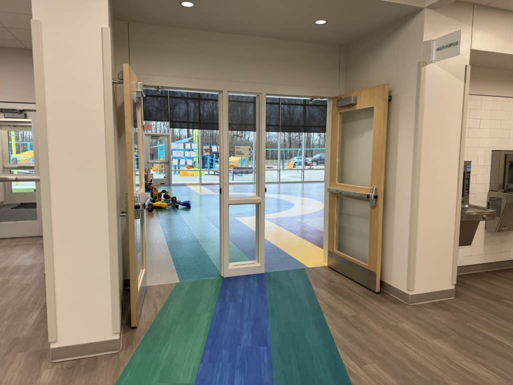 This state-of-the-art facility is designed to accommodate the youngest learners, including those attending the daycare program and the developmental preschool. The new facility boasts enhanced security features, energy-efficient HVAC and lighting systems, a large multi-use activity room featuring sweeping views of the adjacent woods, age-specific play areas that are accessible to students with disabilities, and design elements that draw from the natural environment, creating engaging interior spaces with plenty of natural lighting. All of these features provide an outstanding environment for students to learn and grow while accommodating the unique needs of these young scholars.