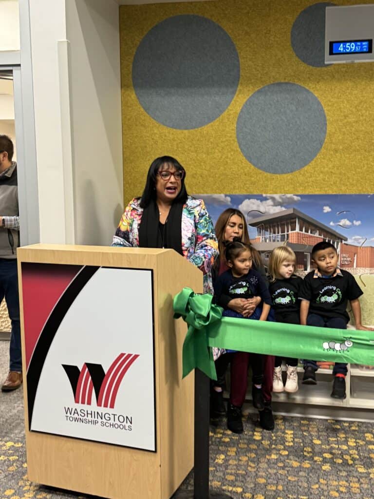 The Early Learning Center was dedicated on January 10, 2024, during a ribbon-cutting ceremony that included members of the Washington Township Schools District Leadership Team, Early Learning Center staff and students, and members of the community.