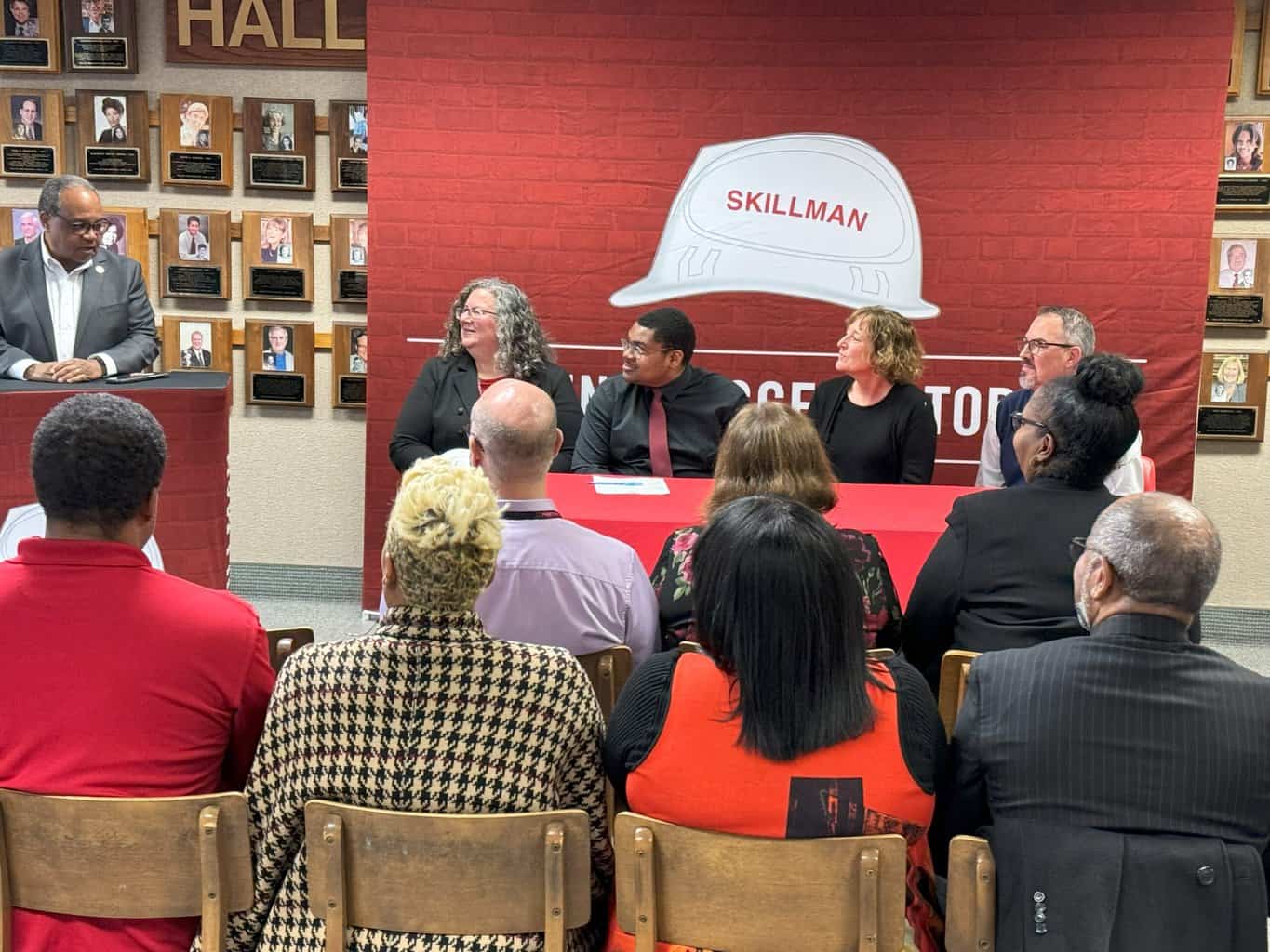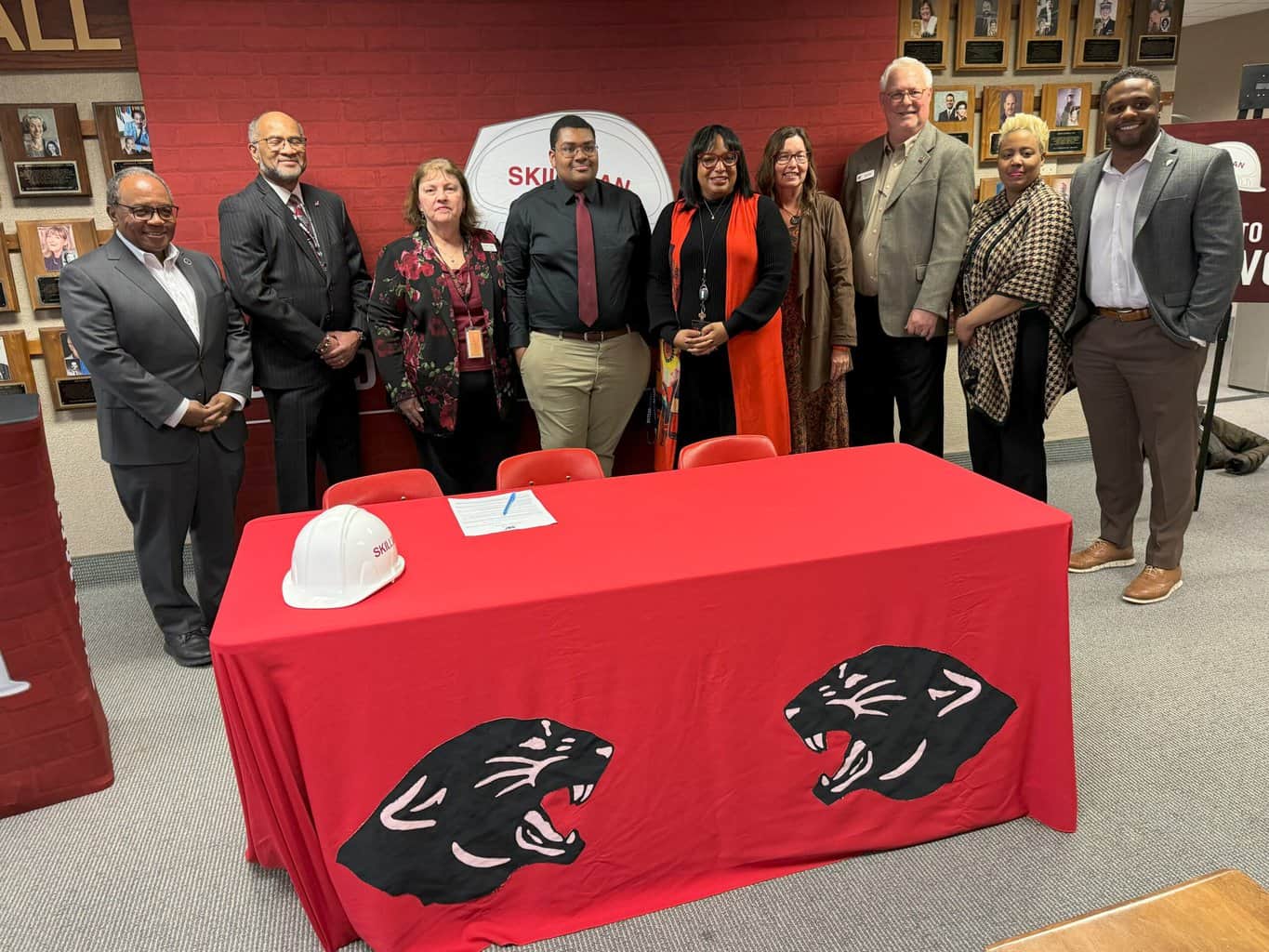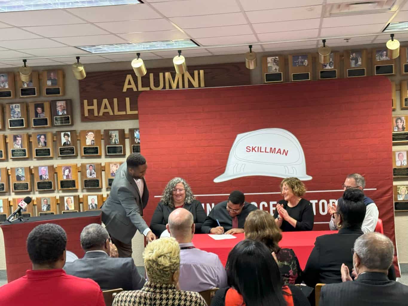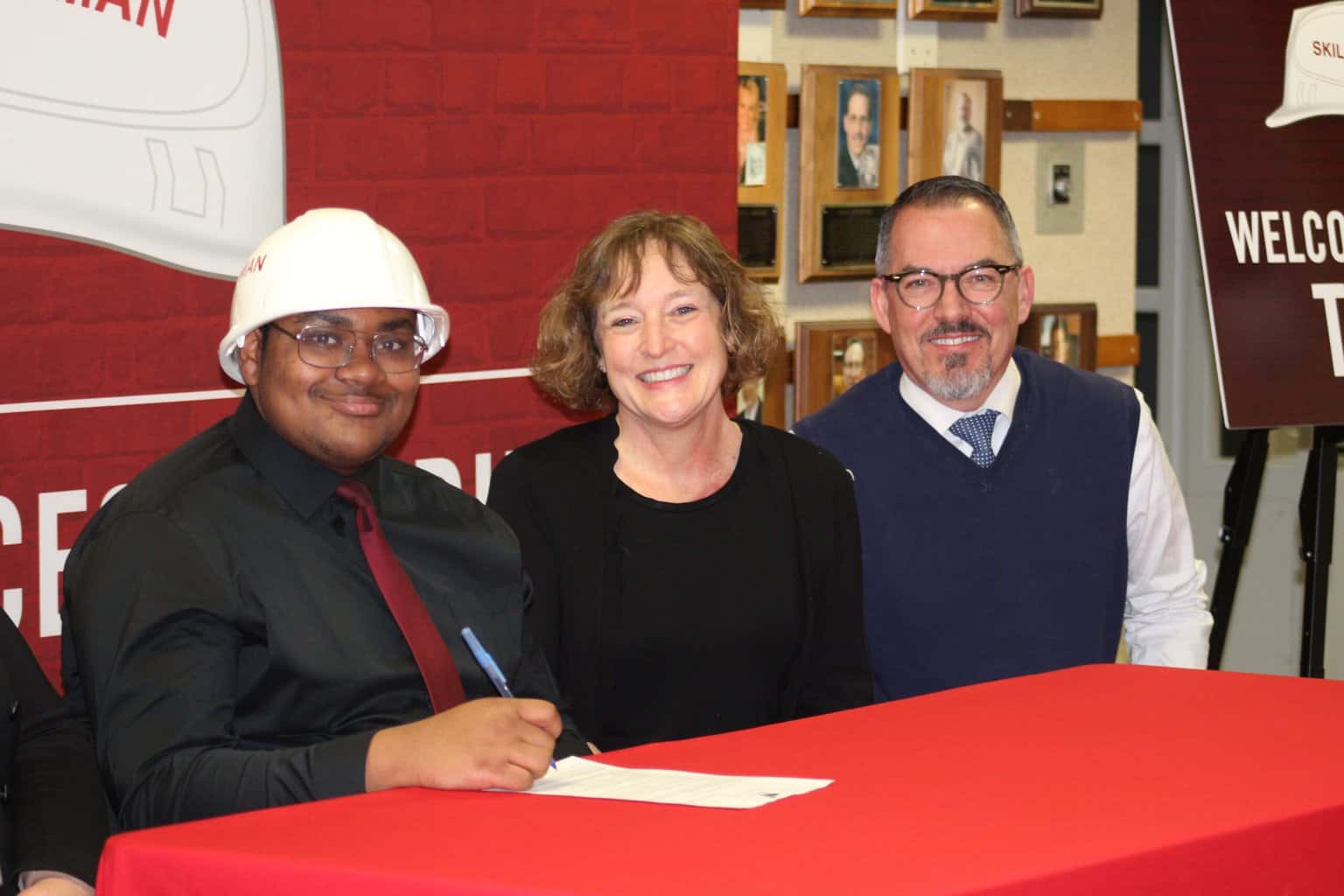 INDIANAPOLIS, IN (February 28, 2024) – Washington Township Schools leaders convened today to celebrate the “signing” of North Central senior Travon Lineweaver as he enters an internship program with the Skillman Corporation. Lineweaver will become the sixth student to participate in this program where students work alongside professionals in the building trades industry, with the goal to demonstrate to our students that careers in the building trades are viable and can lead to career and skills development along with postsecondary education options.