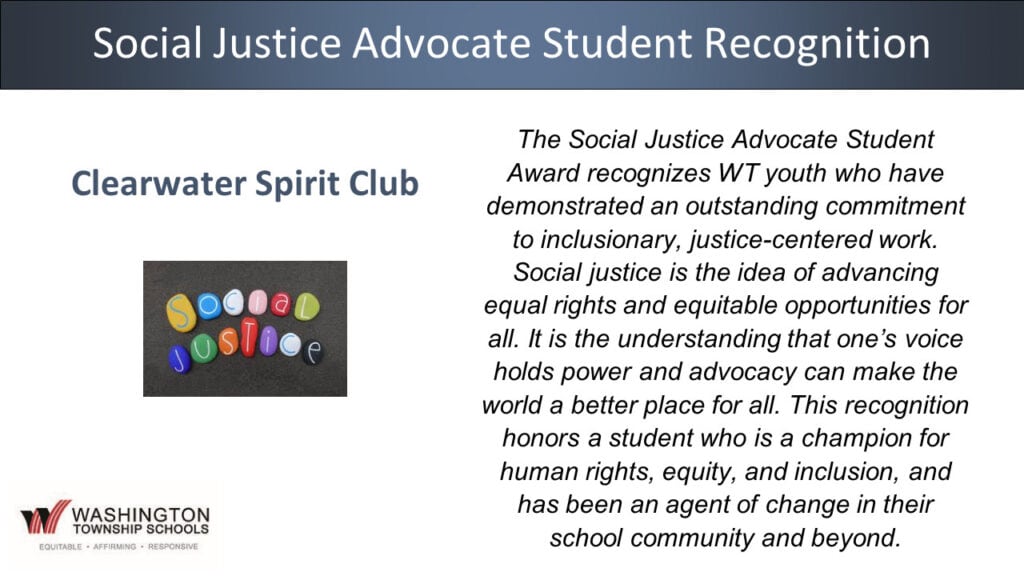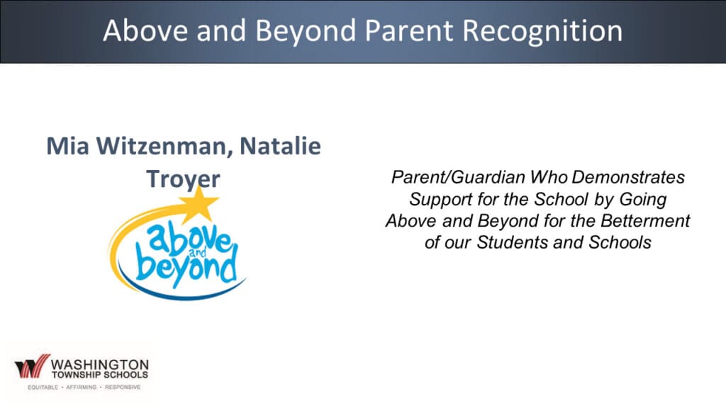 At the May 15, 2024 Regular Meeting of the Board of Education the following groups and individuals were recognized for helping to make Washington Township a Superior School District.
