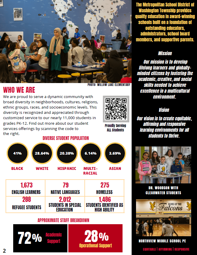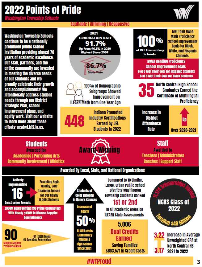 The Metropolitan School District of Washington Township provides quality education in award-winning schools built on a foundation of outstanding educators, administrators, school board members, and supportive parents.