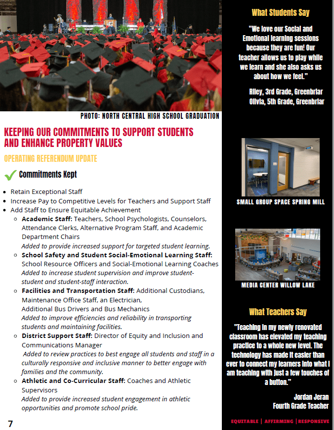 - 90 student support positions were added through ESSER funds and operating referendum funds.