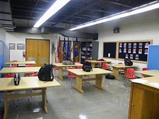 The North Central JROTC classroom consists of three large rooms, two small offices, two storage rooms, and the rifle storage room.
