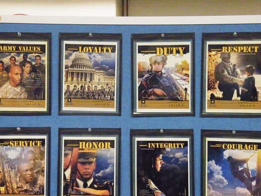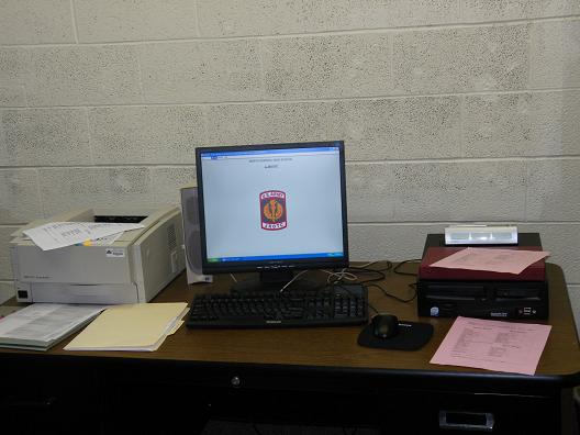 This is the LET 2, 3, and 4 classroom. Major Waldhoff leads the 2nd, 3rd, and 4th year students in this classroom. This room also contains the Army Values posters, flags, computer station, MAJ Waldhoff’s desk, 1SG Durkin’s desk, and one of the two storage rooms.