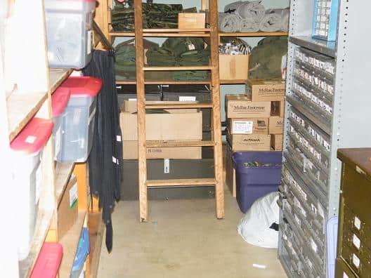 This is the large storage room, where the uniforms are kept. This room also holds the second office, and accessories storage room.
