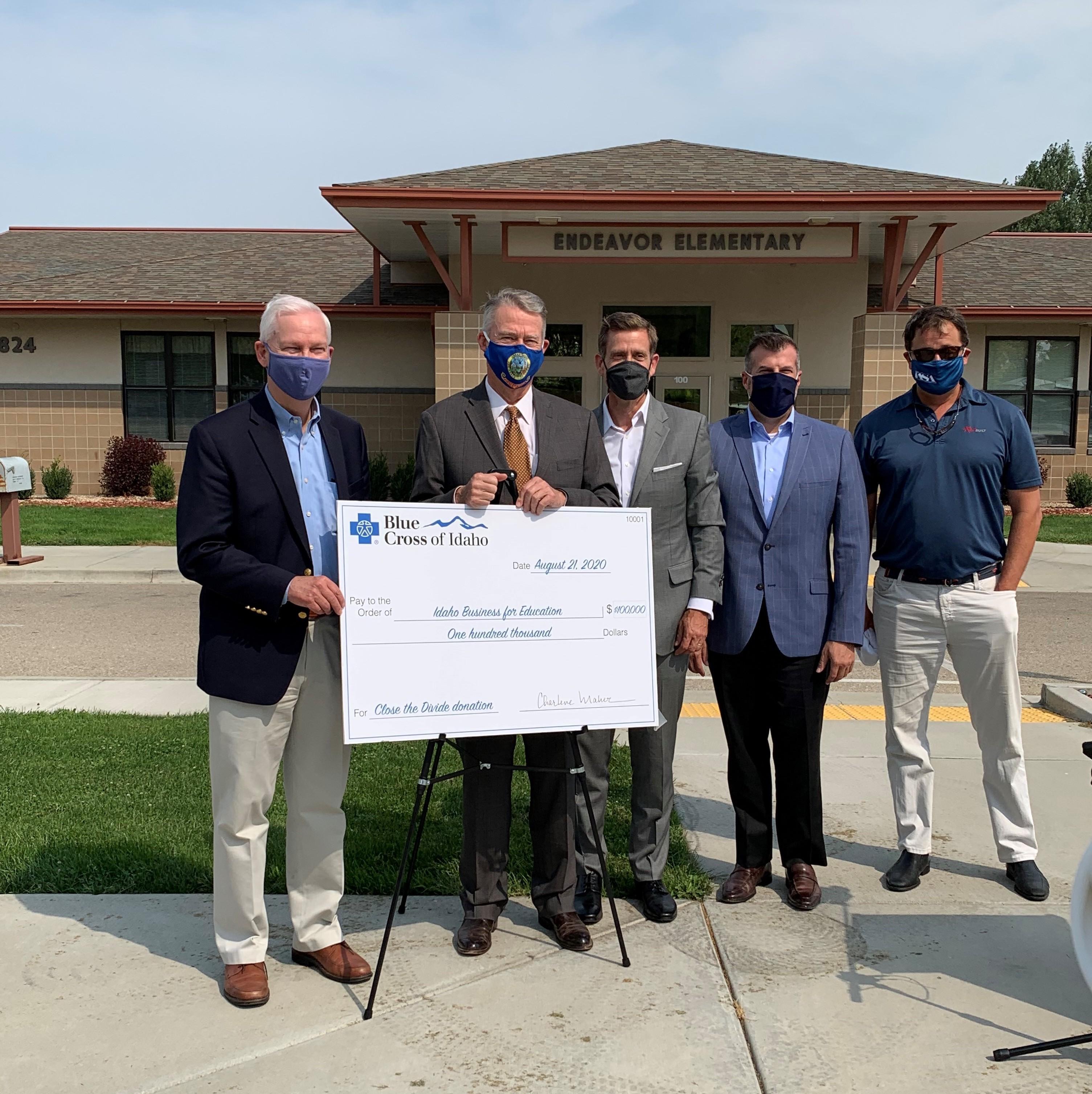 Governor Brad Little joined representatives from Blue Cross of Idaho today at Endeavor Elementary School for the announcement of a significant donation to Idaho Business for Education’s Close the Divide Campaign.