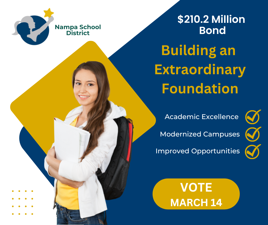 The Nampa School District Board of Trustees voted at a special meeting on Nov. 28, 2022, to run a $210.2 million school bond on March 14 to address and improve educational outcomes for students. The bond will focus on the following: