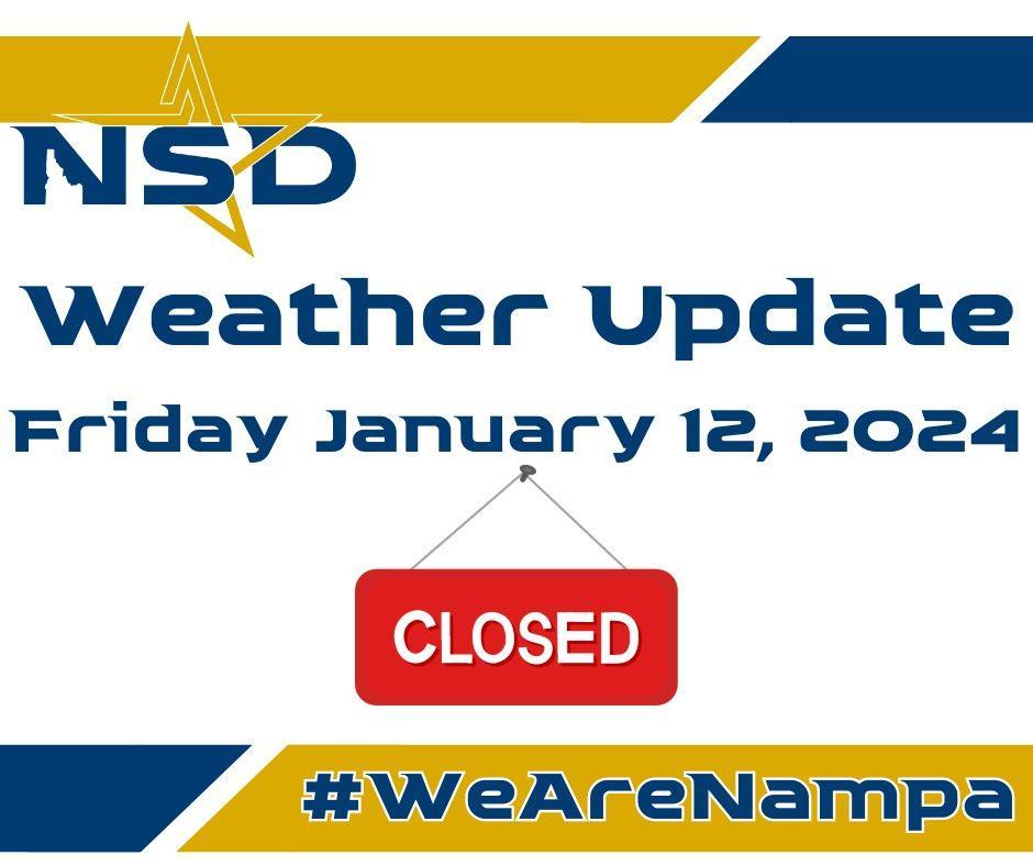 In light of the forecasted severe winter weather, the Nampa School District has decided to close all schools on Friday, January 12th, 2024. This decision is to ensure the safety and well-being of our students and staff.