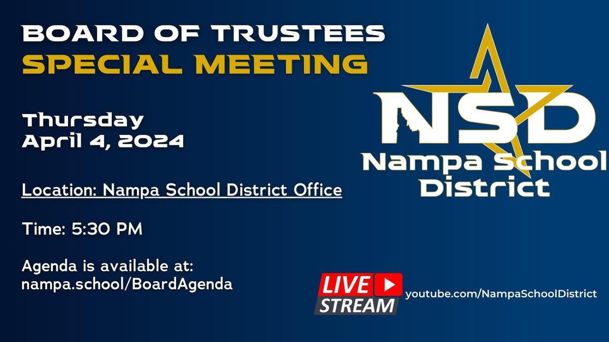 NSD Special Board of Trustees Meeting Full Agenda is available at: nampa.school/BoardAgenda Published April 3, 2024 Print
