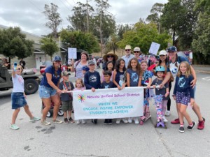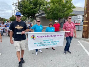 What a delight to see the City of Novato “hometown unity” thriving at the Fourth of July parade! It felt like a revival of the community spirit that Novato has always been known for as they support parade participants from community members, veterans, the equestrian community, dignitaries, and most importantly for NUSD, our students. The welcome and support for students from our community was shining brightly and the students and families were delighted with the show of support! Special thanks to Olive School, Rancho School, San Jose Middle School, and Novato High School for entertaining the community with bubbles, welcoming signs, Lion King performance, AIM High summer program, and MSA rock band “Cubed”. A great time was had by all!