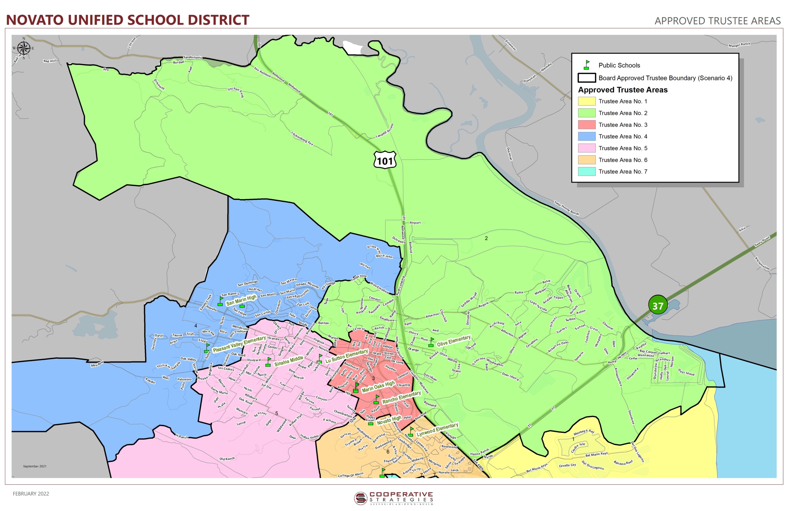 On February 8, 2022, the Board of Trustees approved a revised District Area Map for District Elections due to 2020 Census data. The revised map was submitted to the County of Marin for future elections. The approved Resolution with the revised District Area Map may be found here: Resolution No.17-2021/22-Adopting Revised Trustee Areas (2.8.22)