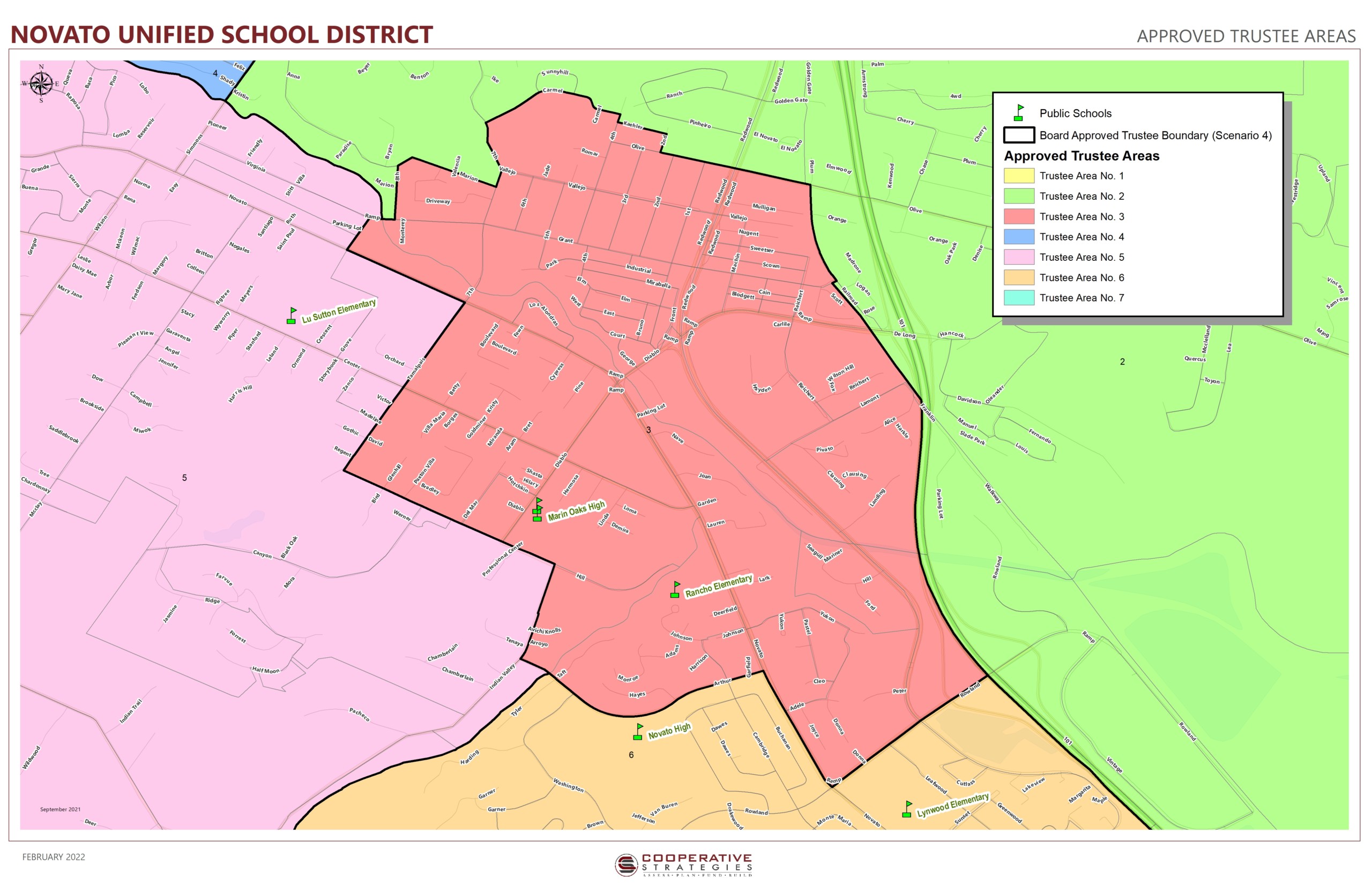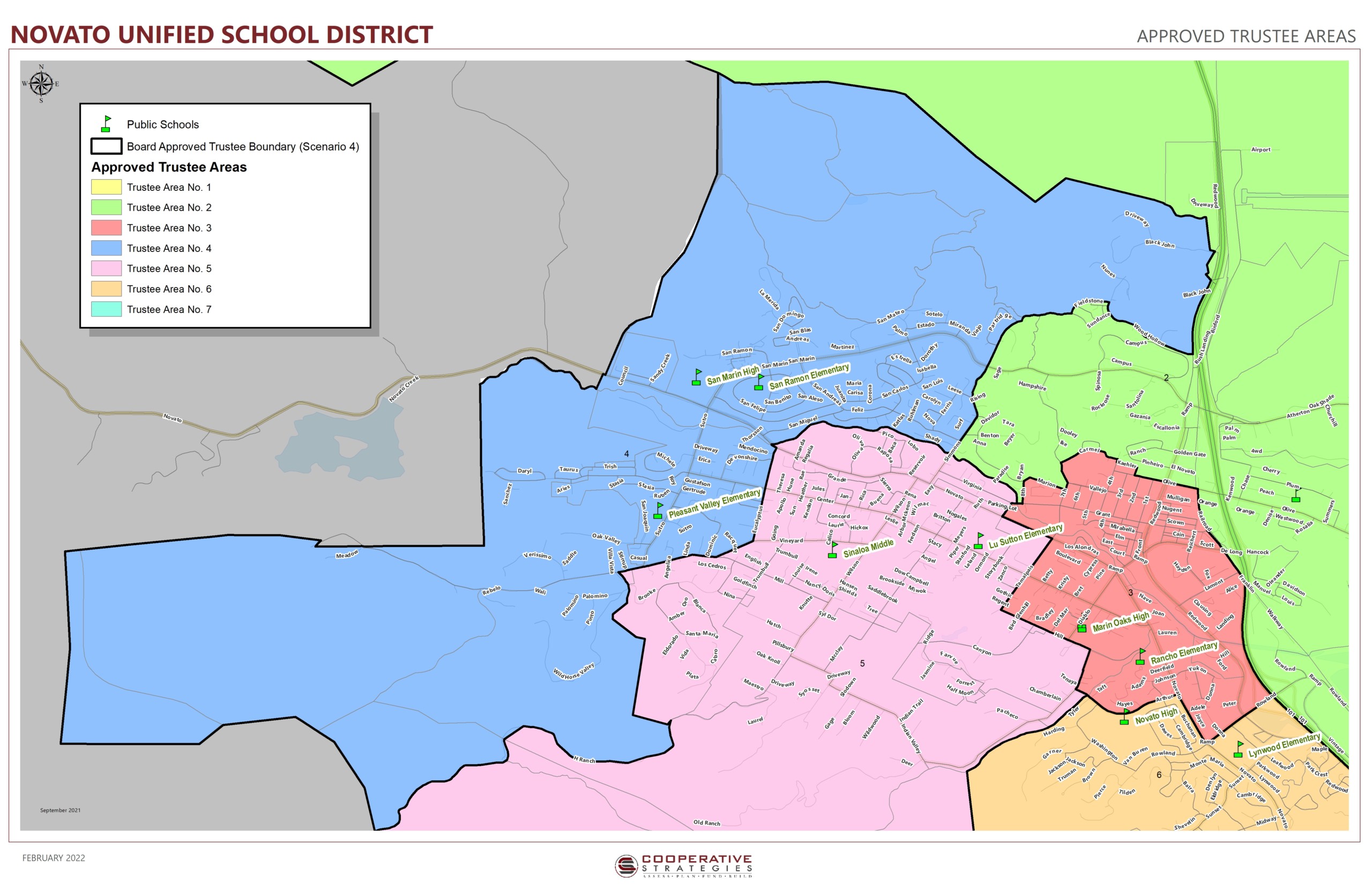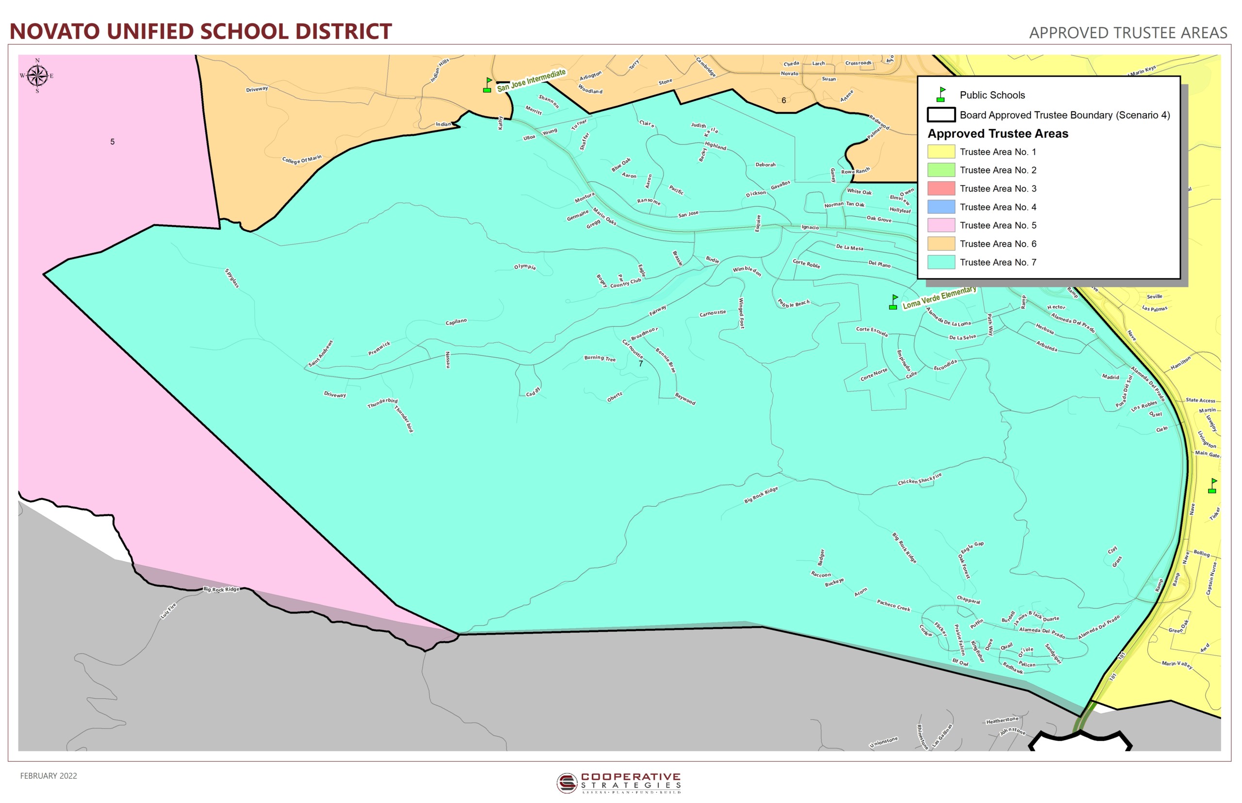 Revised Scenario maps were presented for Board Approval at the February 8, 2022 Regular Board Meeting. The agenda is #13a under Discussion/Action: Approval of Trustee Area Revisions Due to 2020 Census Data.