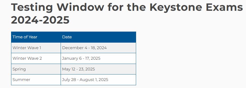 • Keystone Testing Window 2024-2025