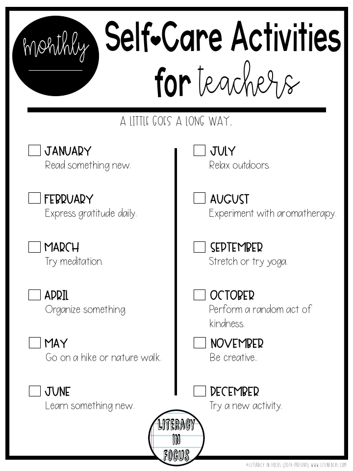 monthly self-care ideas for teachers