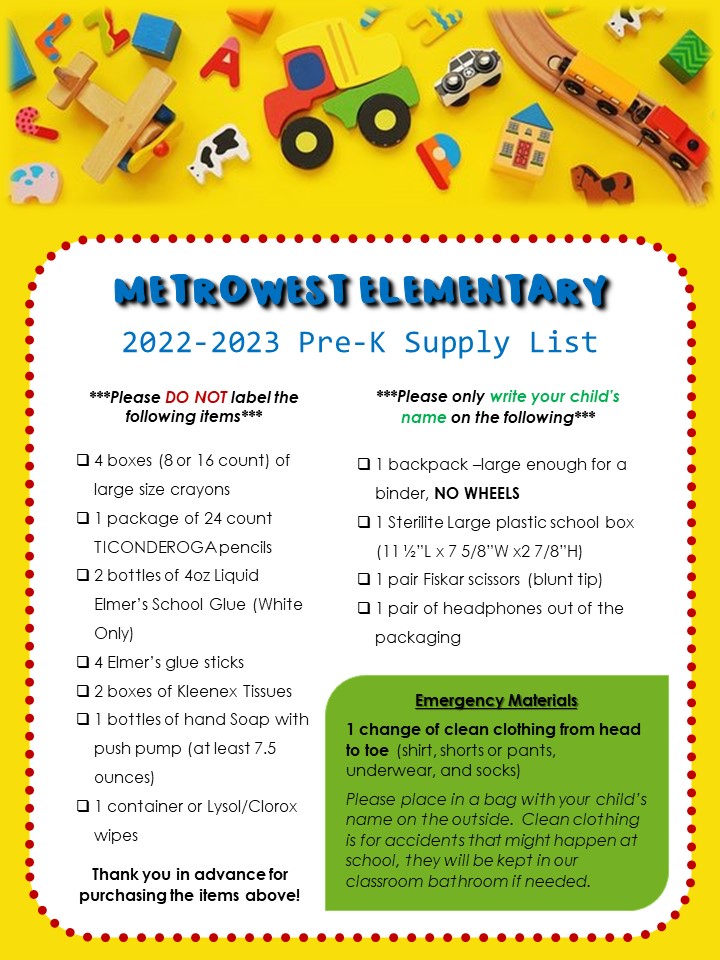 Find your grade level supply list below. Follow the directions when labeling your school supplies.