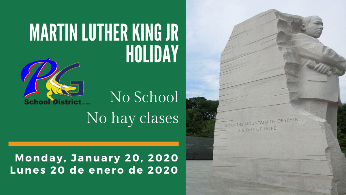 Martin Luther King Jr. Holiday - No School No school Monday, January 20, 2020. No hay clases Lunes 20 de enero de 2020 Print