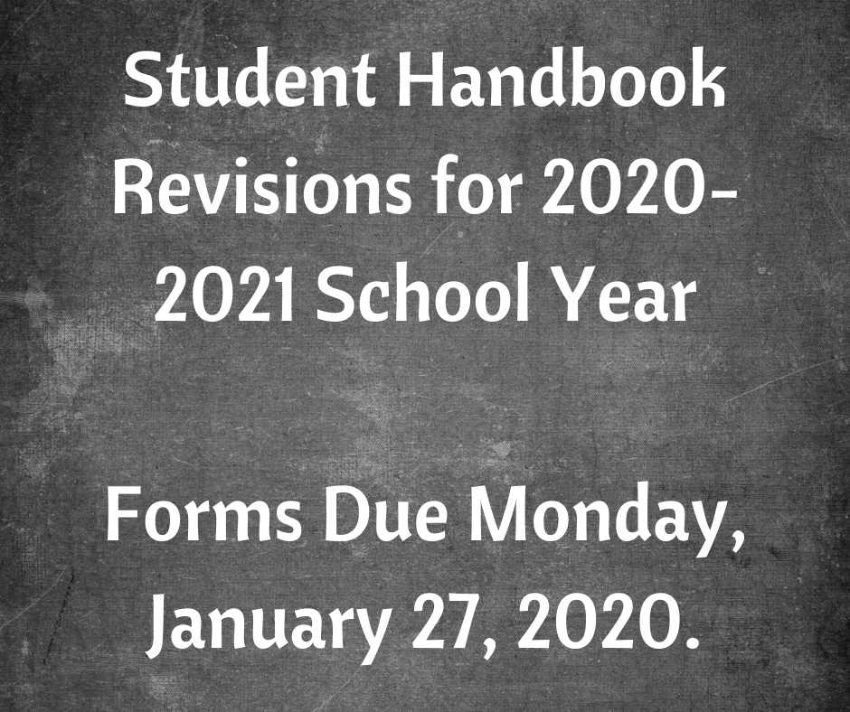 Student handbook revisions went home on Monday, January 13th. Forms are due back to schools on Monday, January 27th.