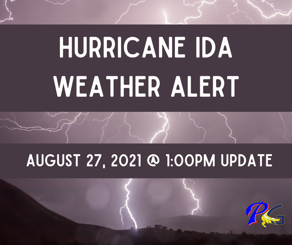 The Pascagoula-Gautier School District will be closed Monday, August 30, 2021 due to inclement weather associated with Hurricane Ida. Students should complete enrichment assignments sent home with them today. Our plans are to return to school on Tuesday, Aug. 31, and we will continue to closely monitor the weather throughout the weekend. Stay tuned to our PGSD and school social media pages and the pgsd.ms website for further updates. Please stay safe.