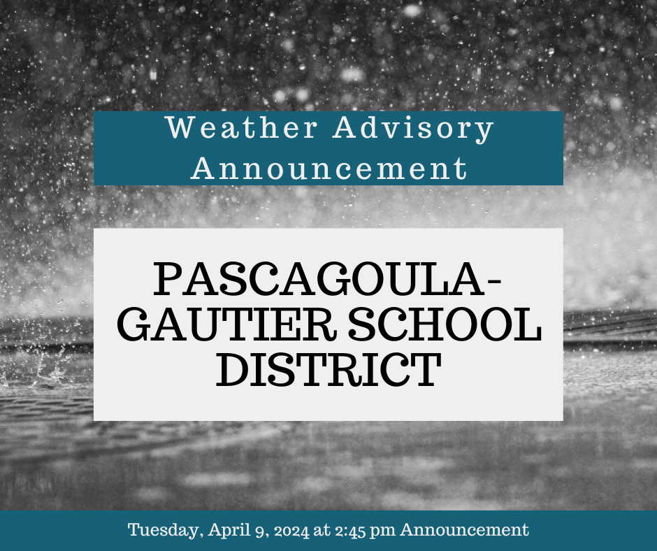 The PGSD will continue to closely monitor the incoming inclement weather expected Wednesday. At this time, the PGSD plans to have school on Wednesday as the forecast is for the heaviest rain to track north of the coast. If further updates are necessary, messages will be posted to the PGSD Facebook page, and sent via text message and to our local television outlets.