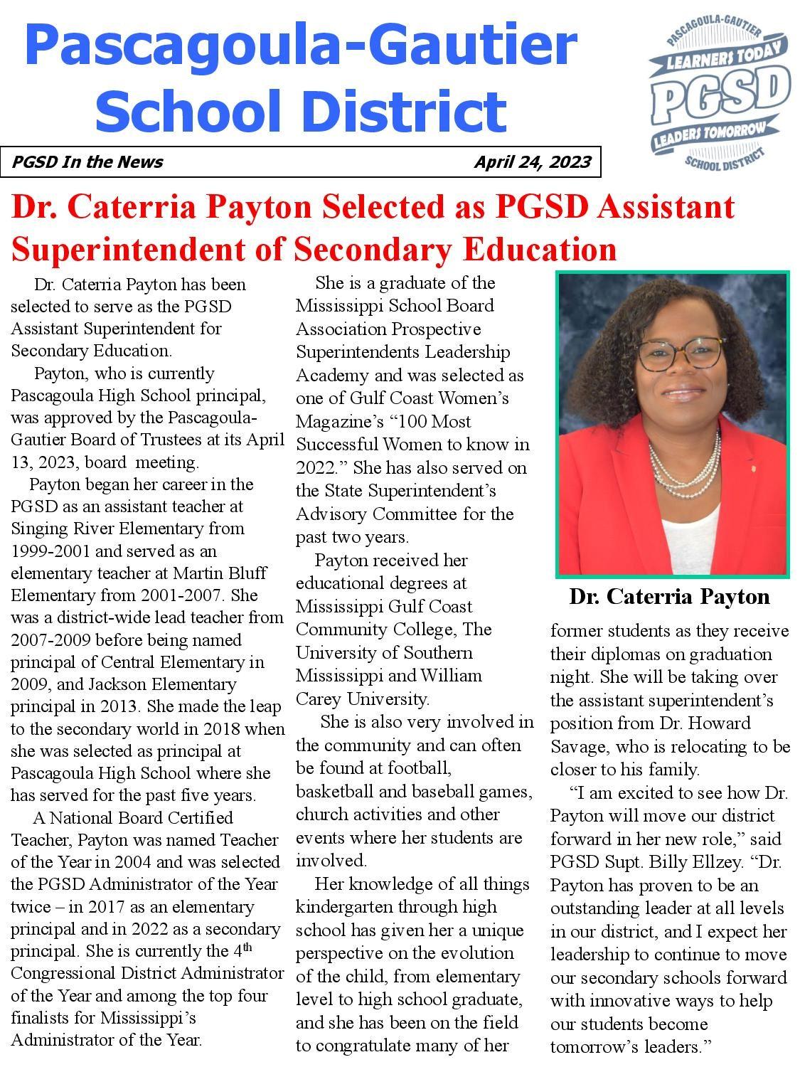 Dr. Caterria Payton Selected as PGSD Assisstant Superintendent of Secondary Education