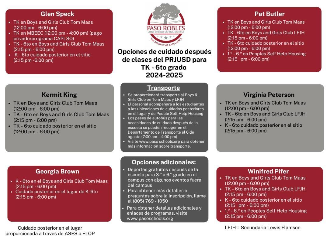 After school care and transportation for TK-6 Grade / Cuidado de niños después de clase para TK-6 grado