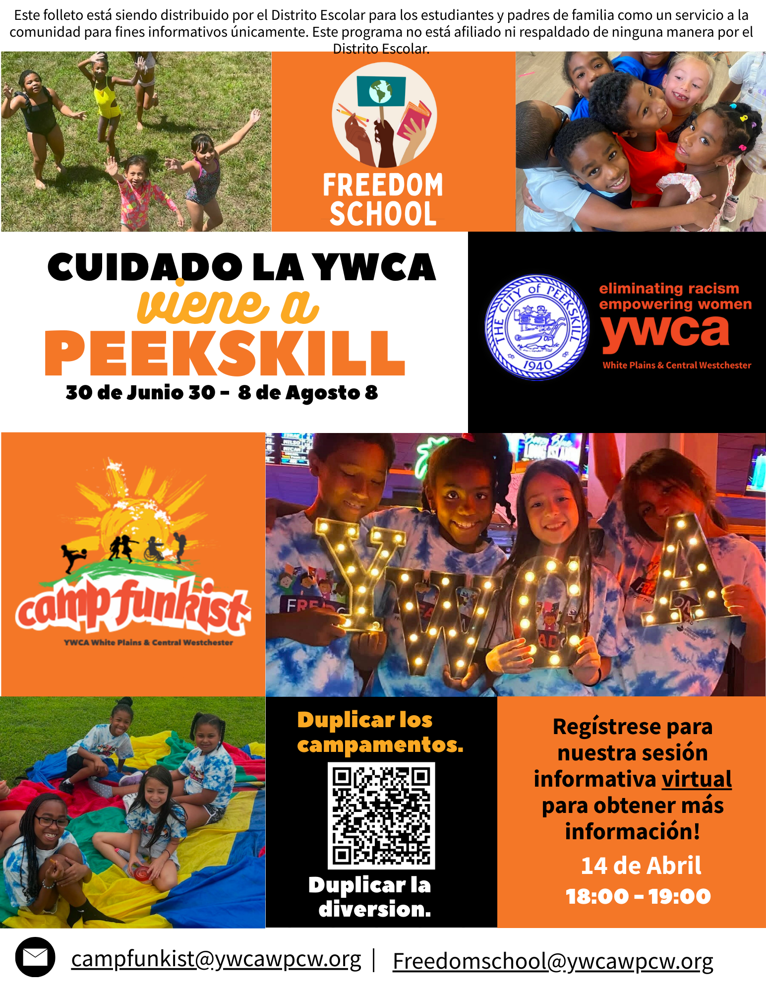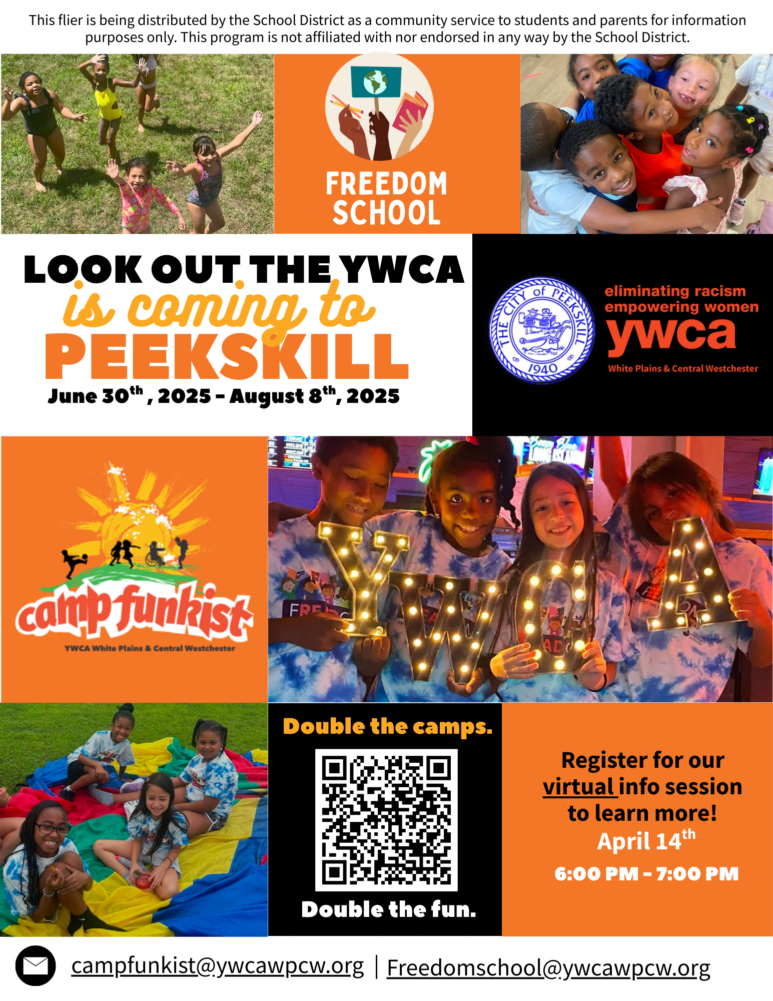 NOTE: To have your flyer posted on this website, it MUST contain the district disclaimer. Please submit all flyers for posting to nrecuppio@peekskillschools.org.