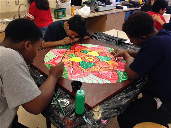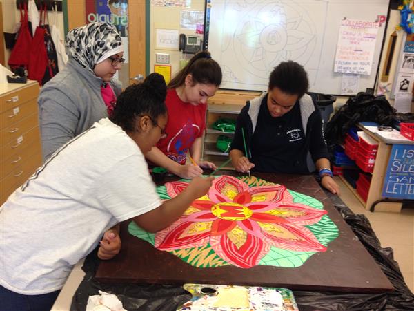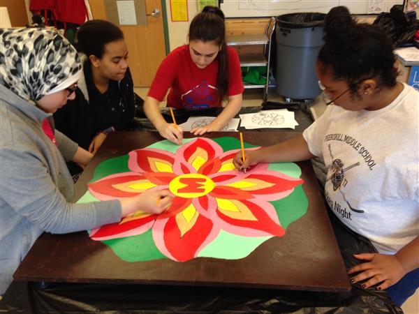 The art department worked with the Hudson Valley Center for Contemporary Art to develop an artist residency program. The artist residency program was implemented as a way to bring local artists into the classroom to work with students on collaborative art pieces.