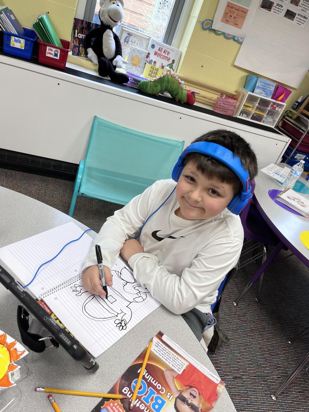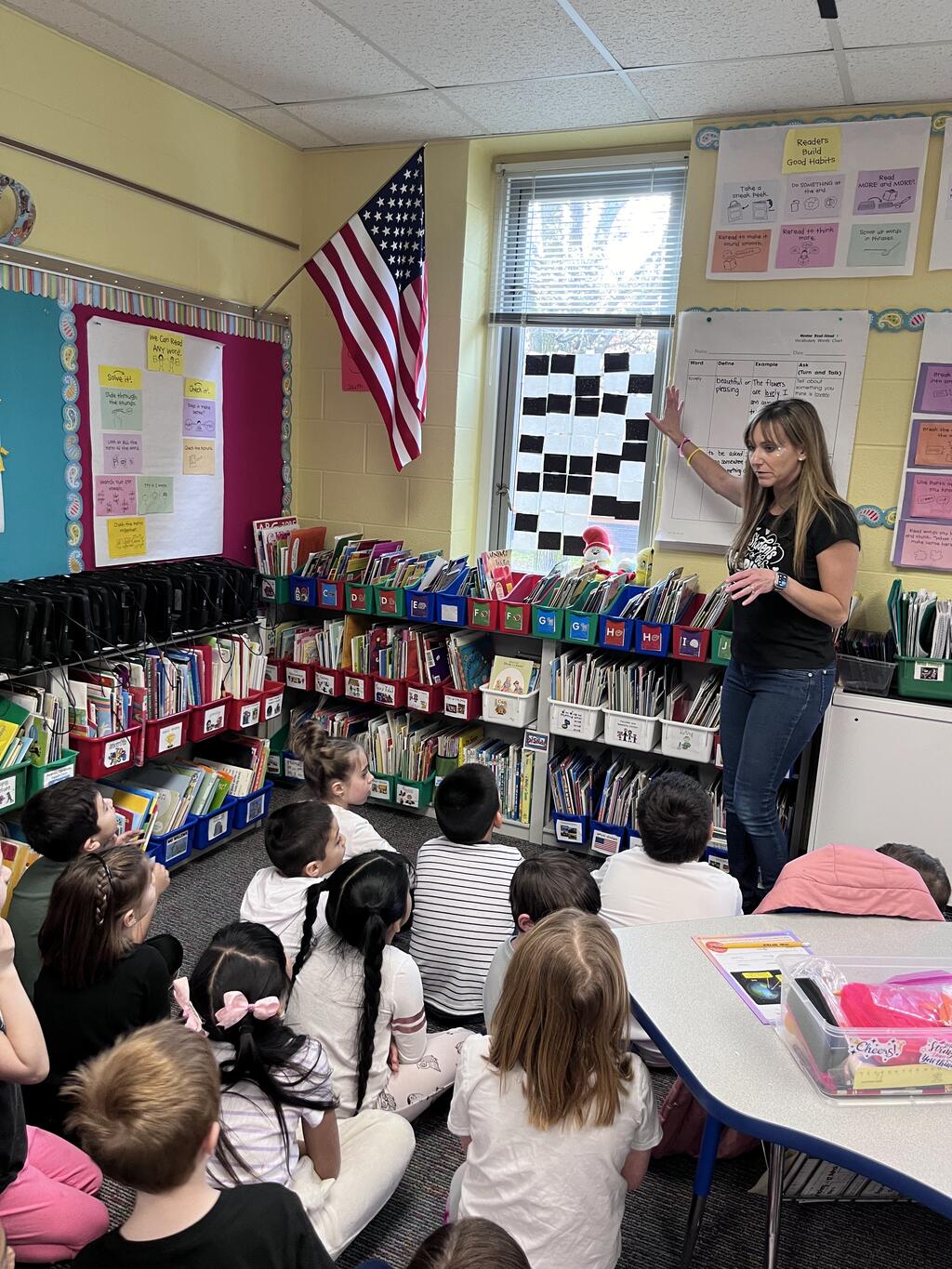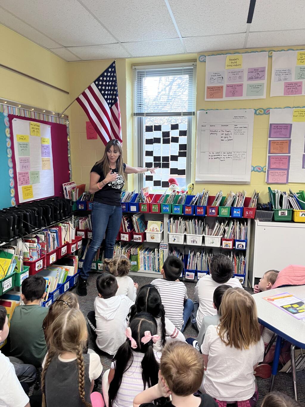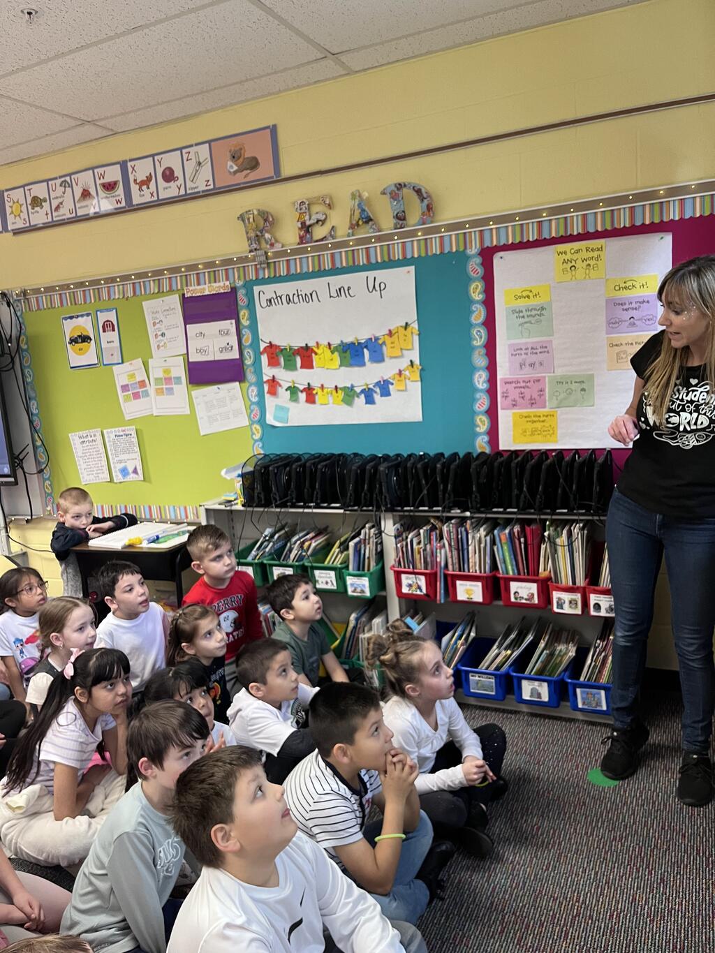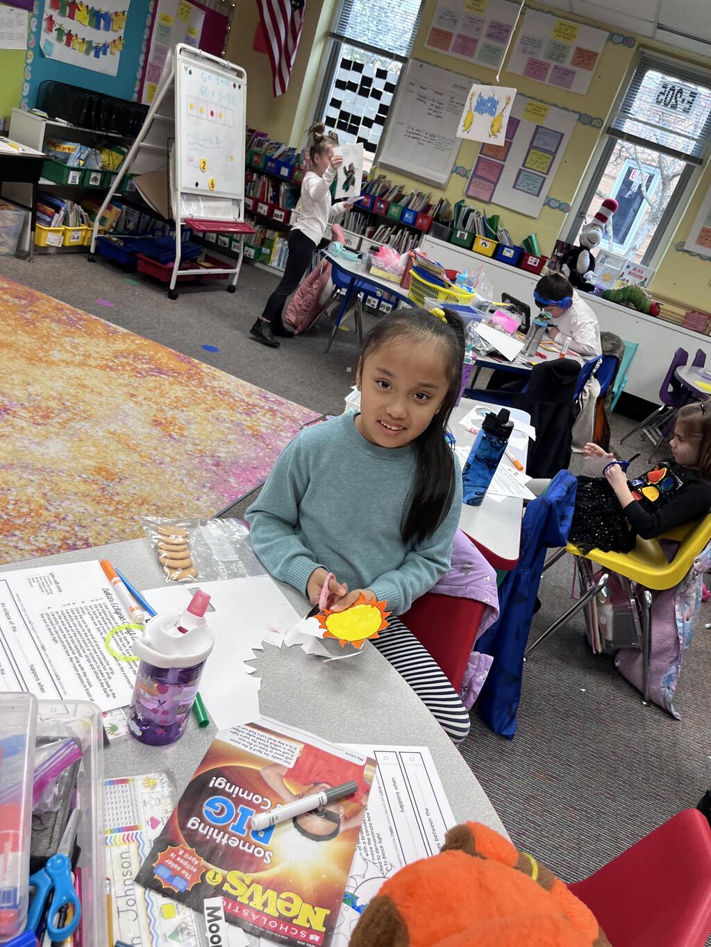 Miss Guzik's and Mrs. Keene's classes are really enjoying their unit, "Exploring the Sky"! With the help of student teacher, Kristi Bates and a high school helper, Nathan Kunsman, the Space Room was created!