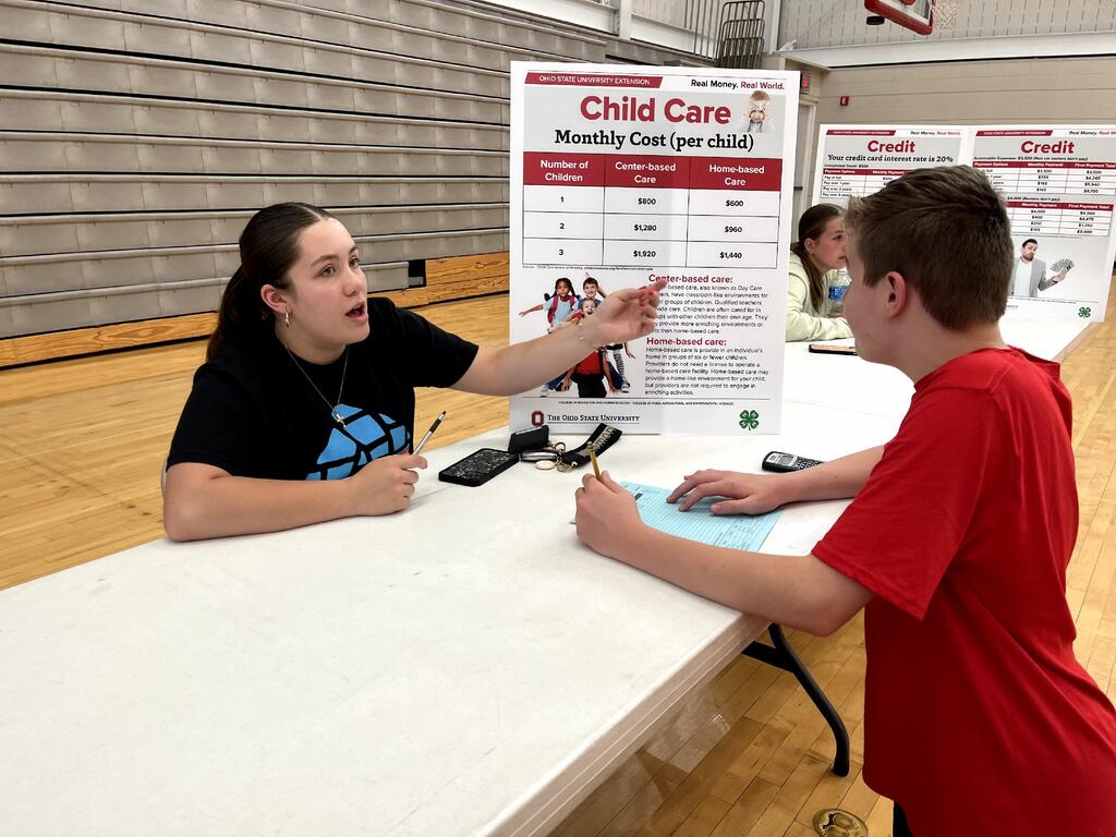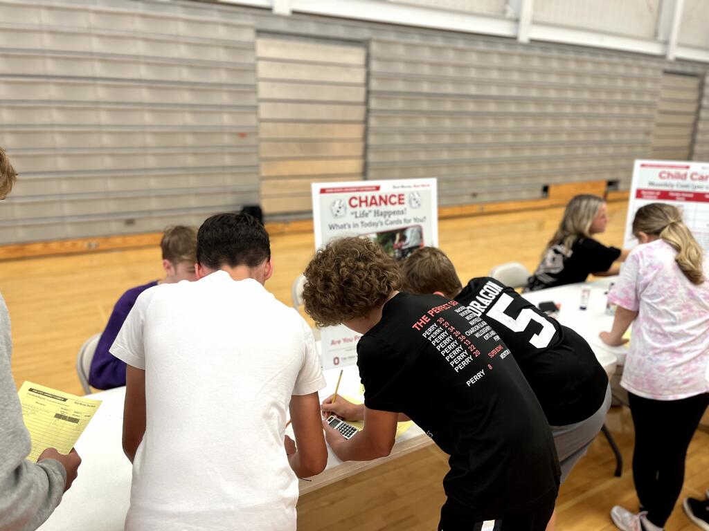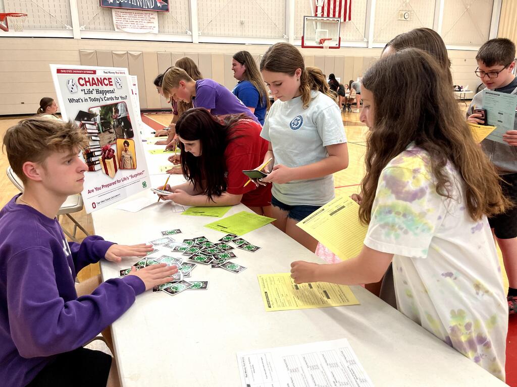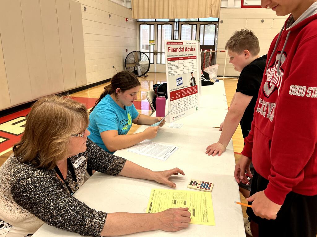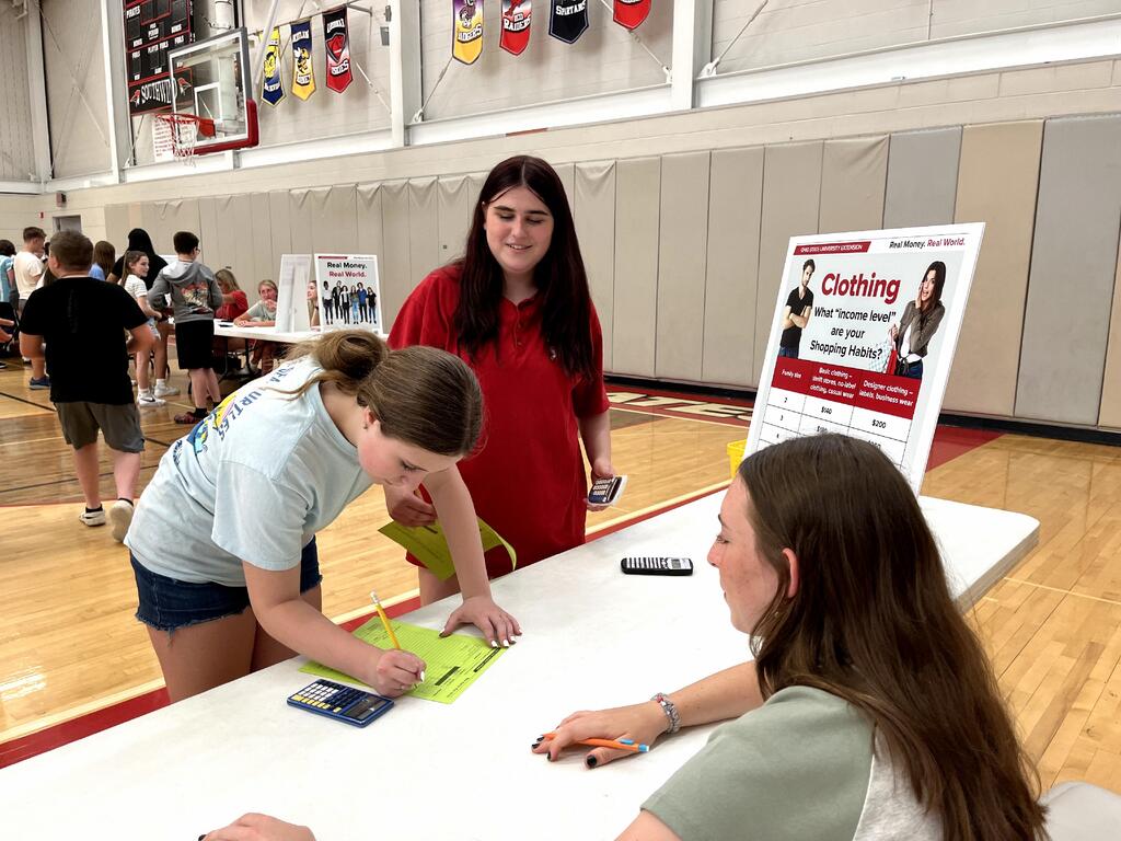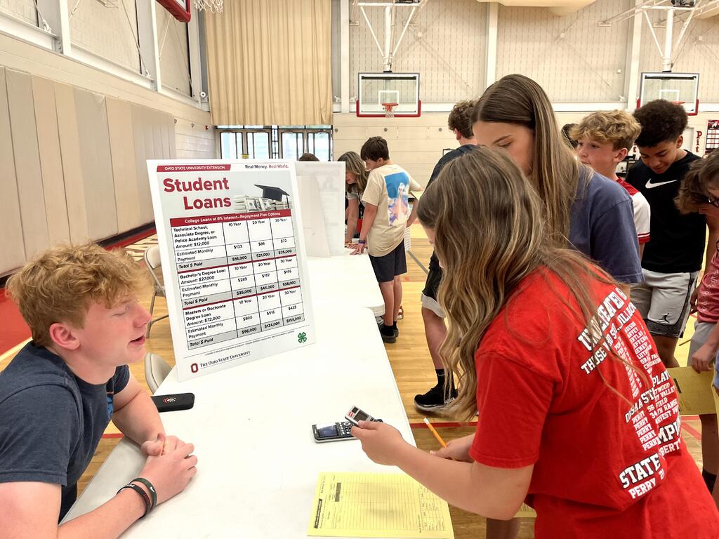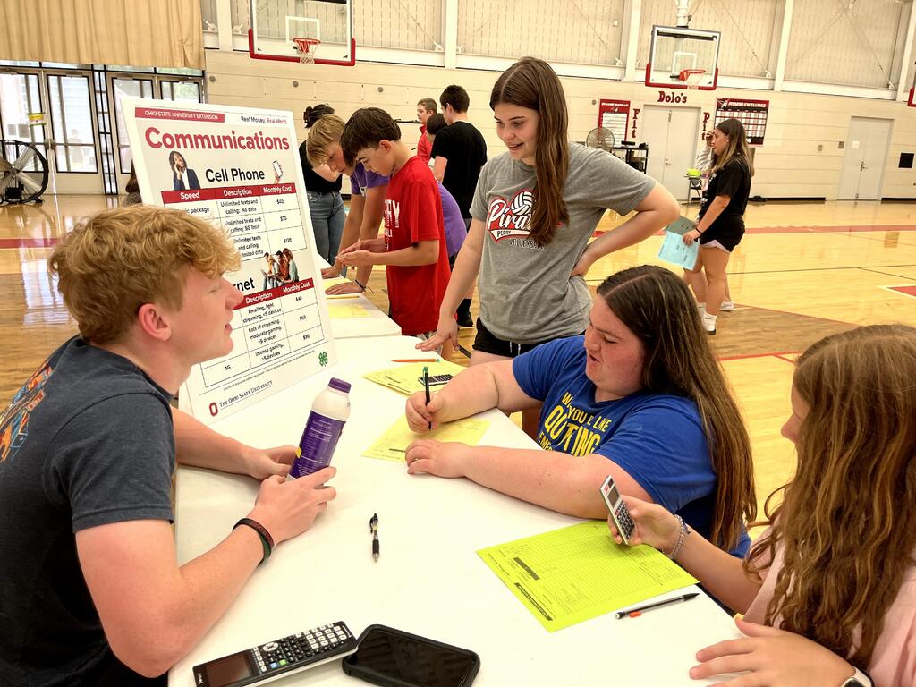 On May 20th, 7th graders participated in Ohio State University extension's Economic Simulation “Real Money, Real World”. Students rotated through the different stations to make financial decisions. Stations include: child care, clothing, communications, contributions, credit card, entertainment, food, housing, insurance, student loans, health & wellness, and chance.