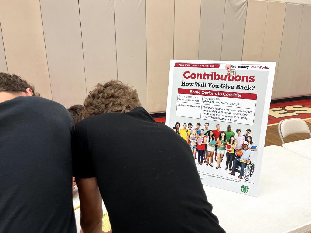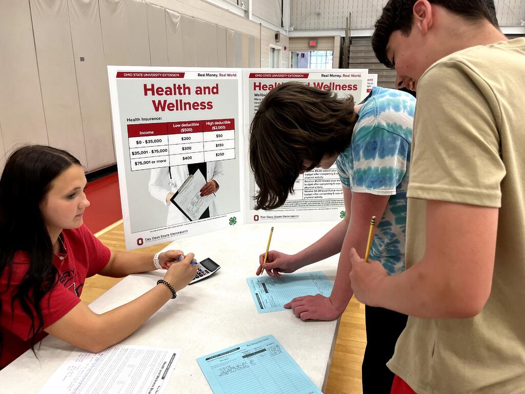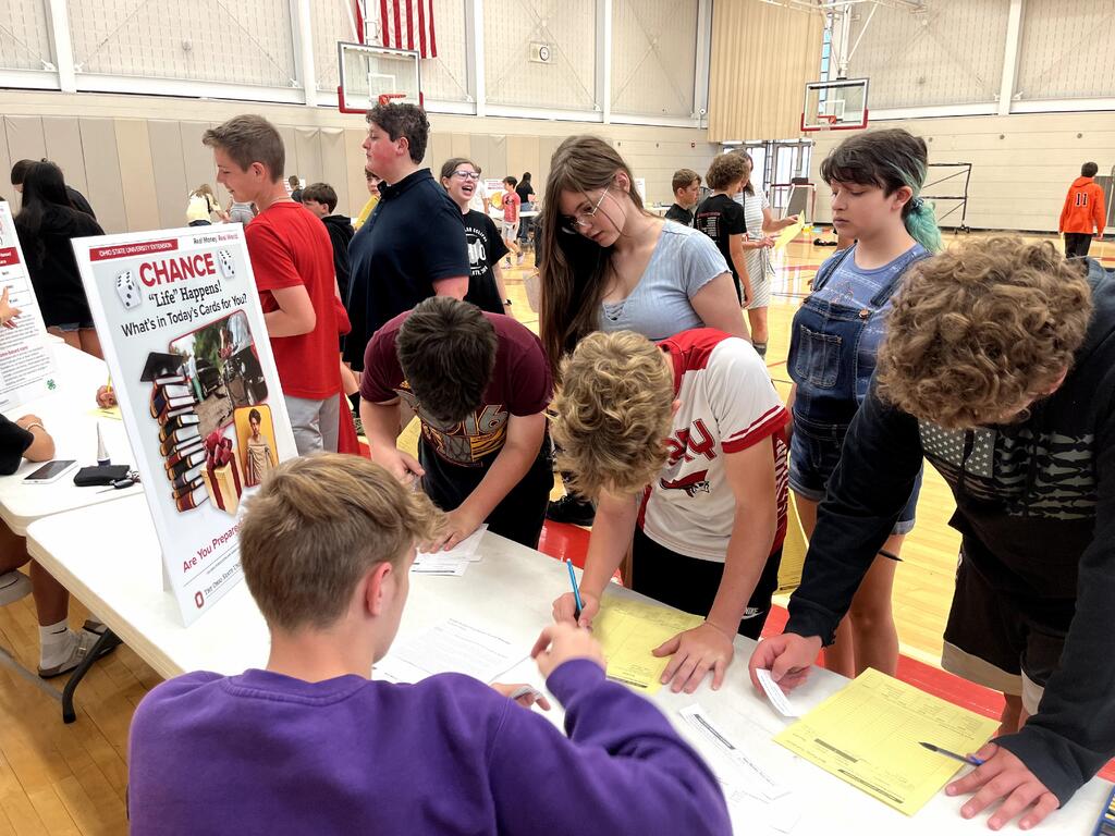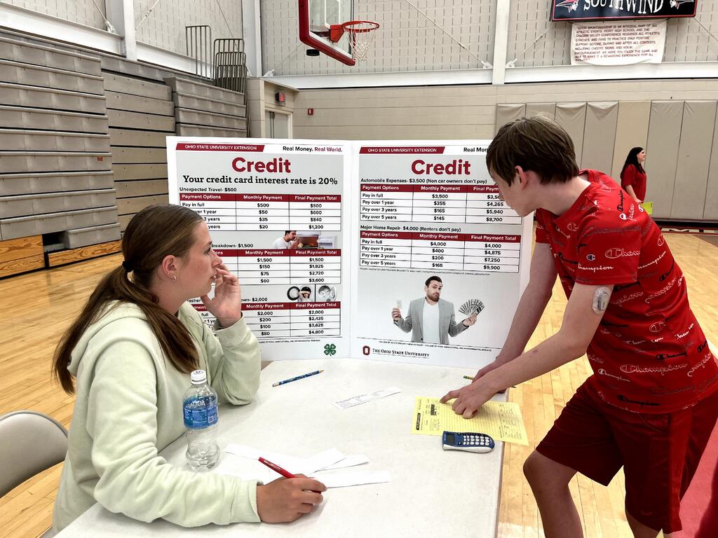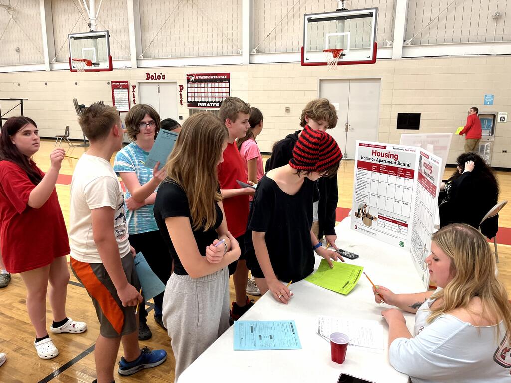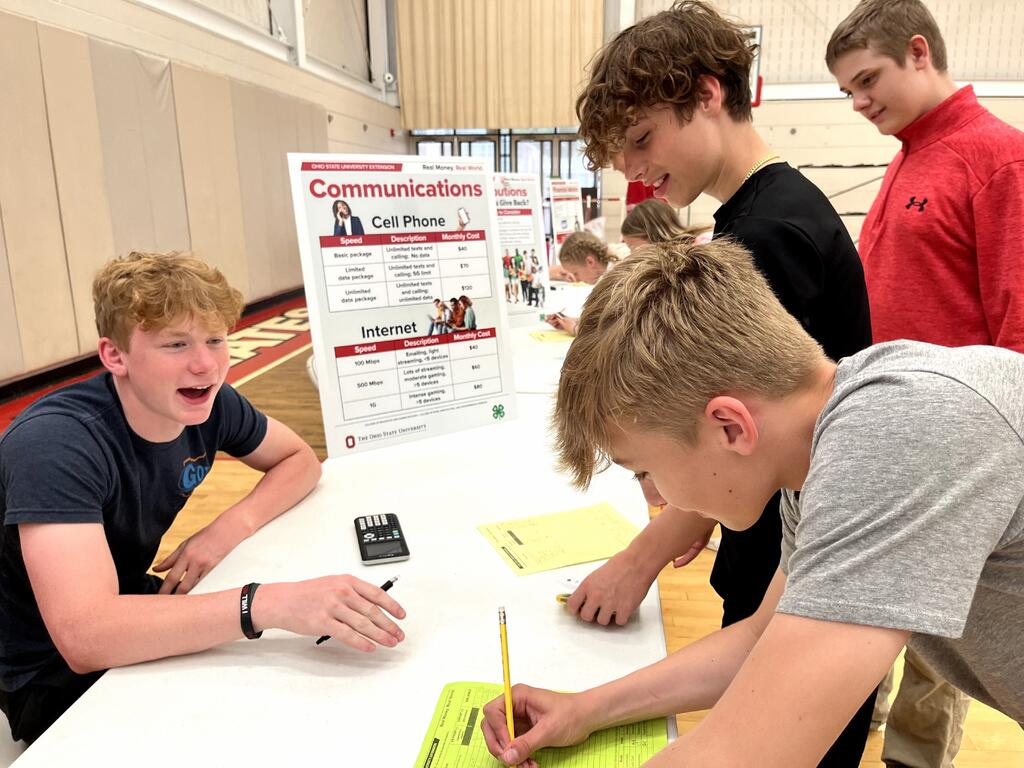 On May 20th, 7th graders participated in Ohio State University extension's Economic Simulation “Real Money, Real World”. Students rotated through the different stations to make financial decisions. Stations include: child care, clothing, communications, contributions, credit card, entertainment, food, housing, insurance, student loans, health & wellness, and chance.