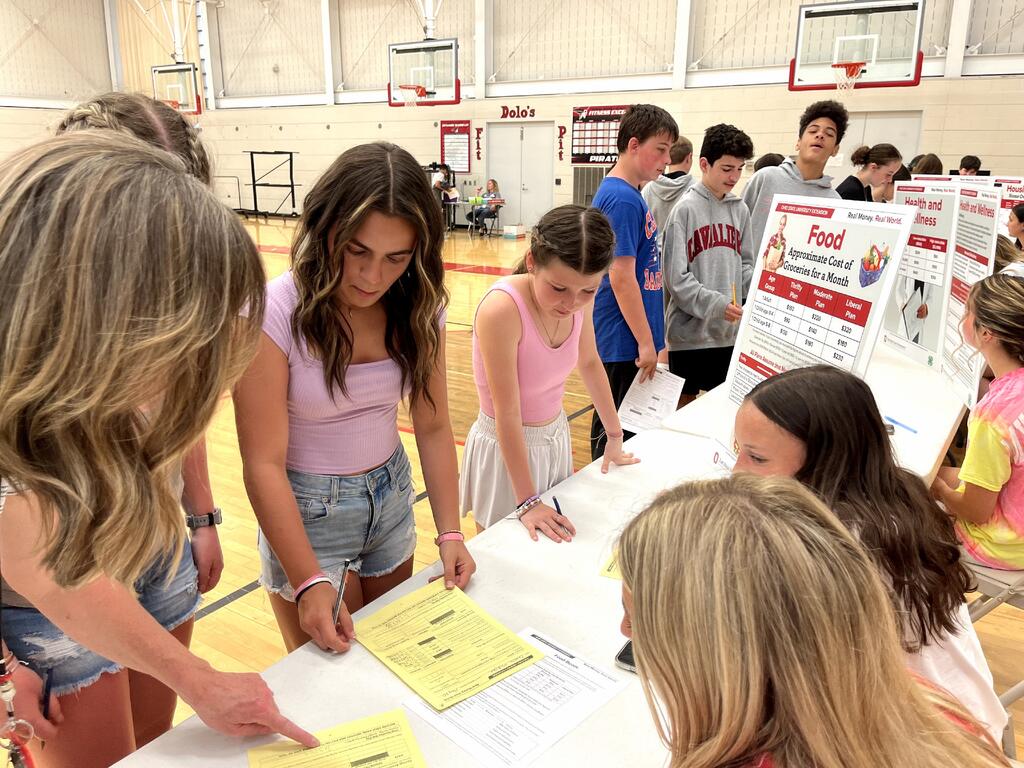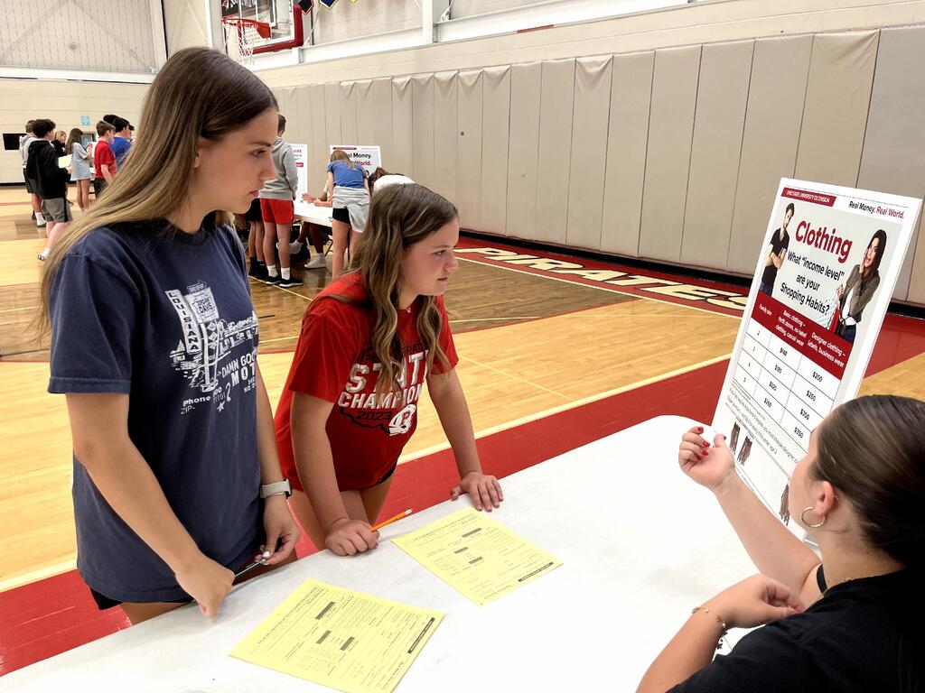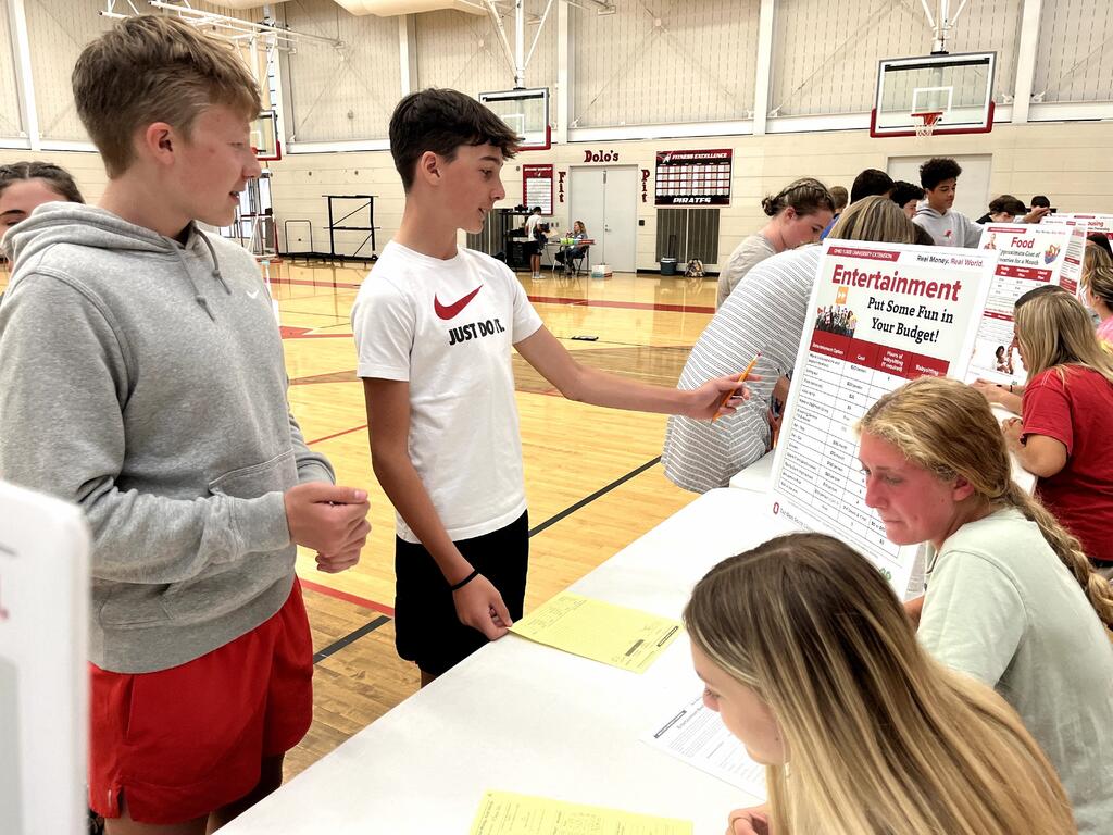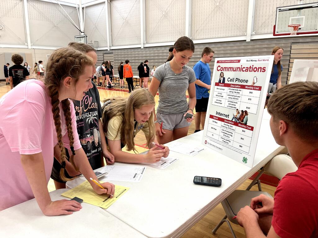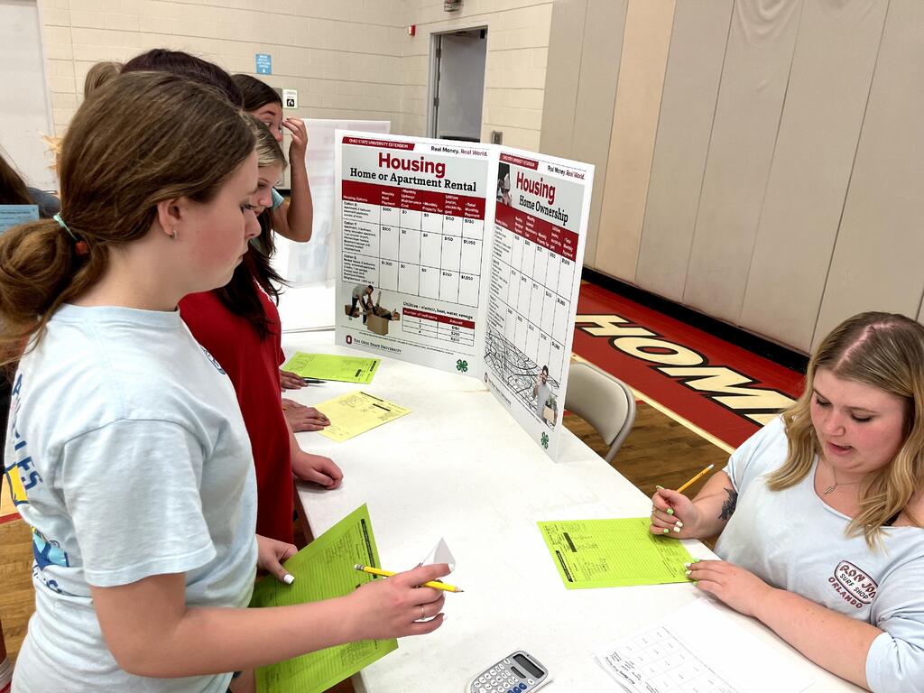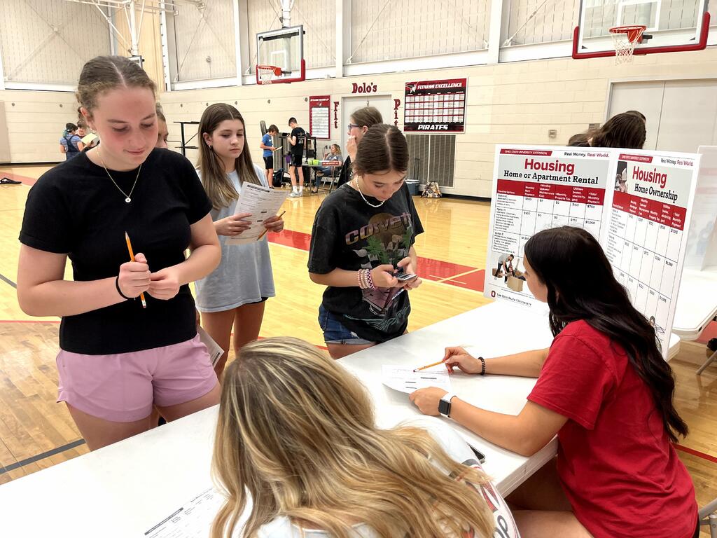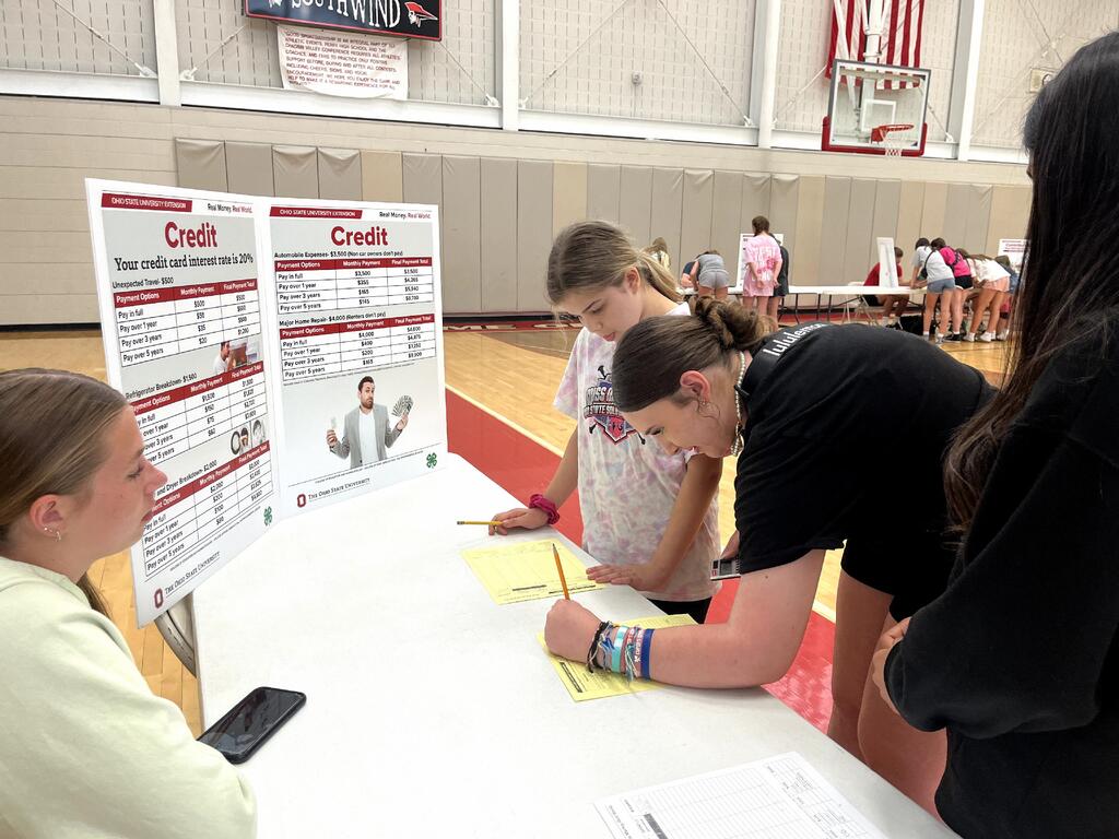 On May 20th, 7th graders participated in Ohio State University extension's Economic Simulation “Real Money, Real World”. Students rotated through the different stations to make financial decisions. Stations include: child care, clothing, communications, contributions, credit card, entertainment, food, housing, insurance, student loans, health & wellness, and chance.