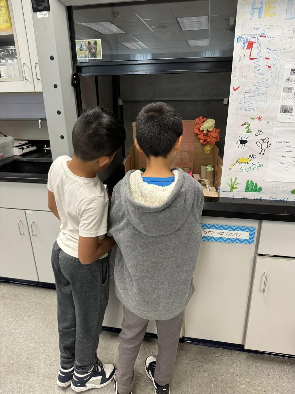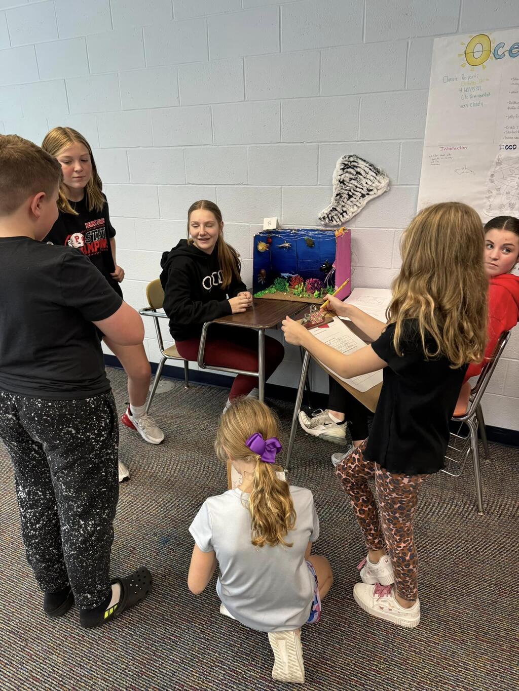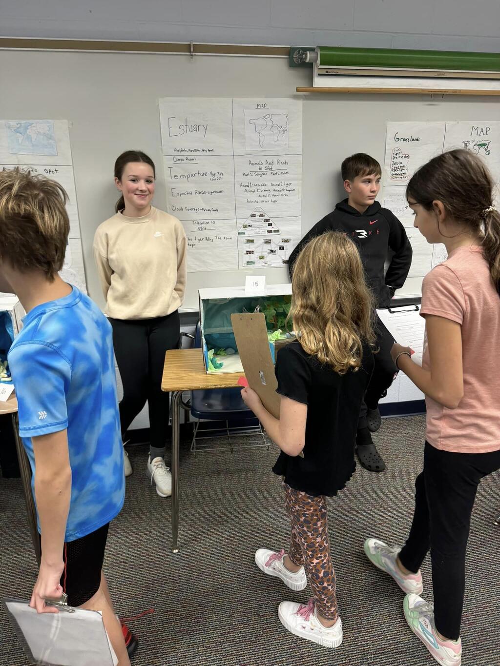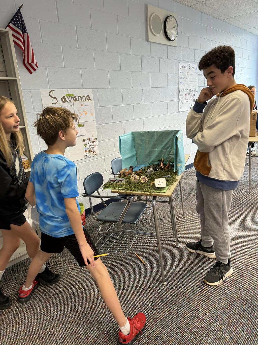 Recently, 5th grade students in Mrs. Harvey and Mrs. Vis' classes visited the 7th grader's homemade biome zoo exhibits in Mrs. Monroe and Mrs. Gaser's classes.