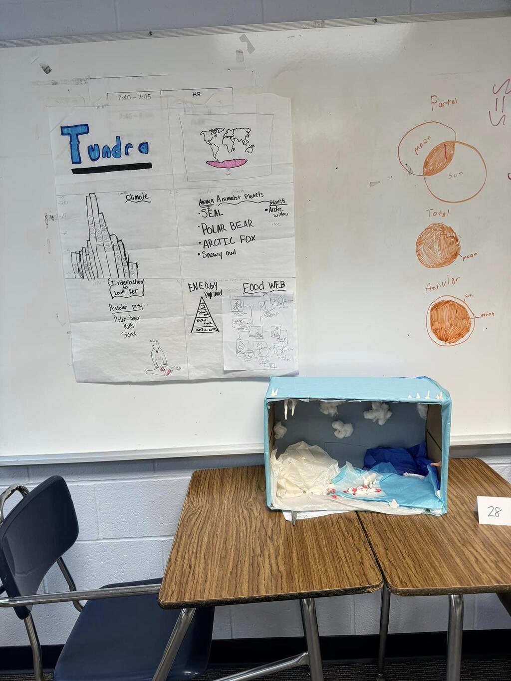 7th grade students fulfilled the roles of biologists, ecologists, and/or meteorologists to research different components of a particular biome and brought their research together to create an accurate 3D model. Together, all the biome models created the "7th Grade Zoo."