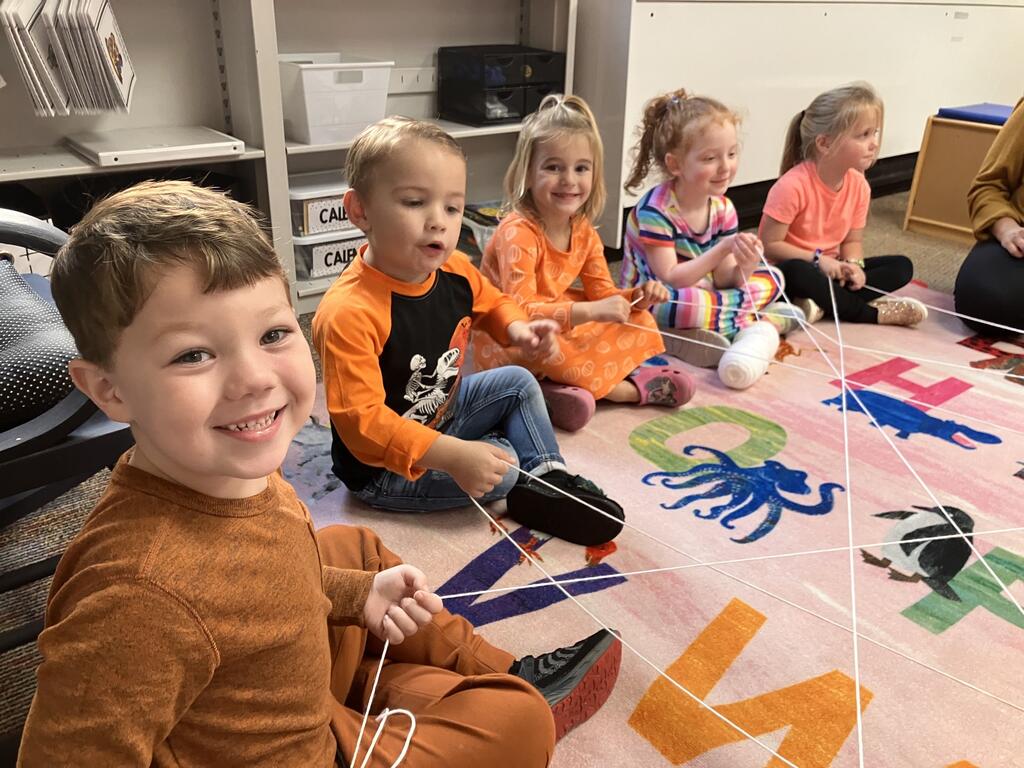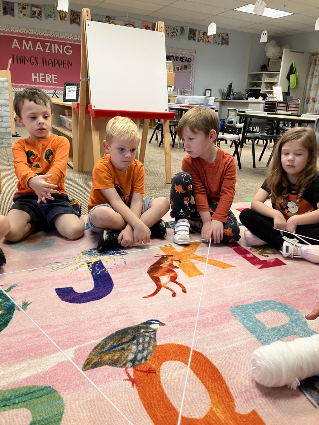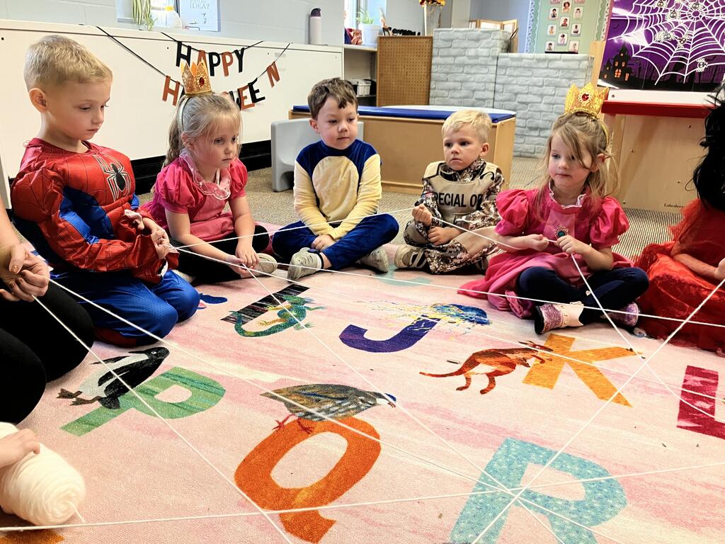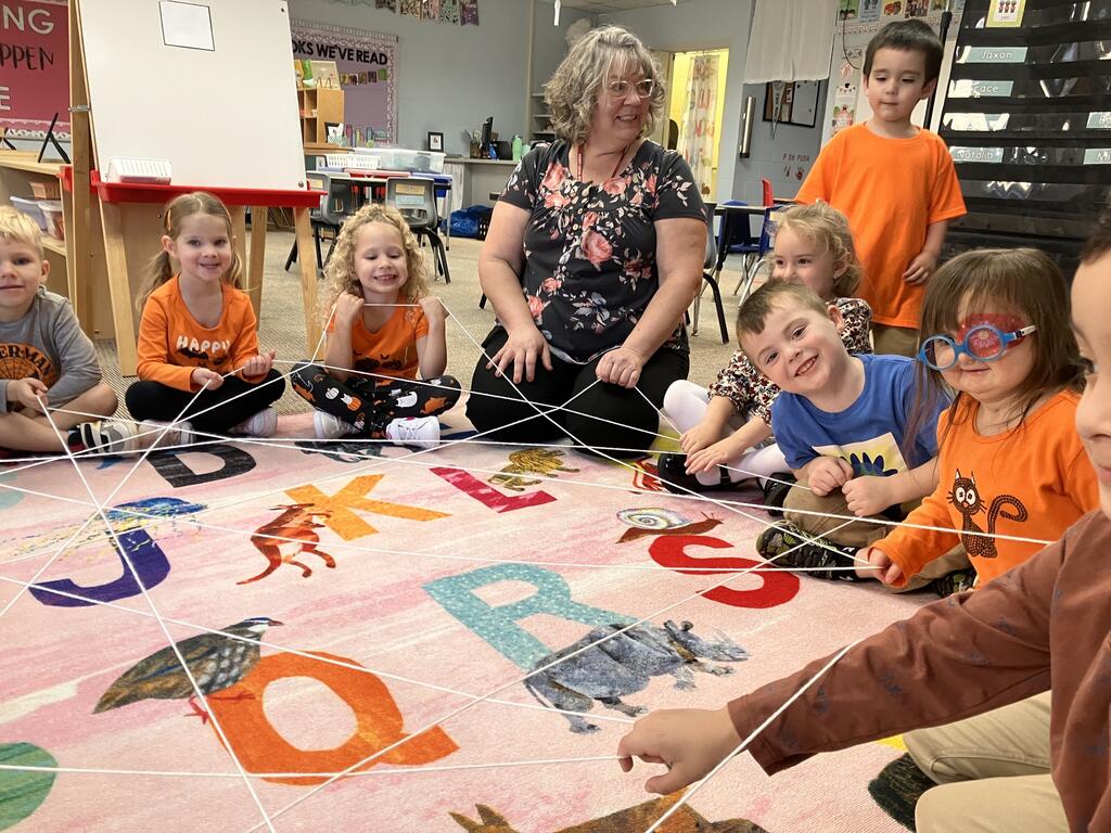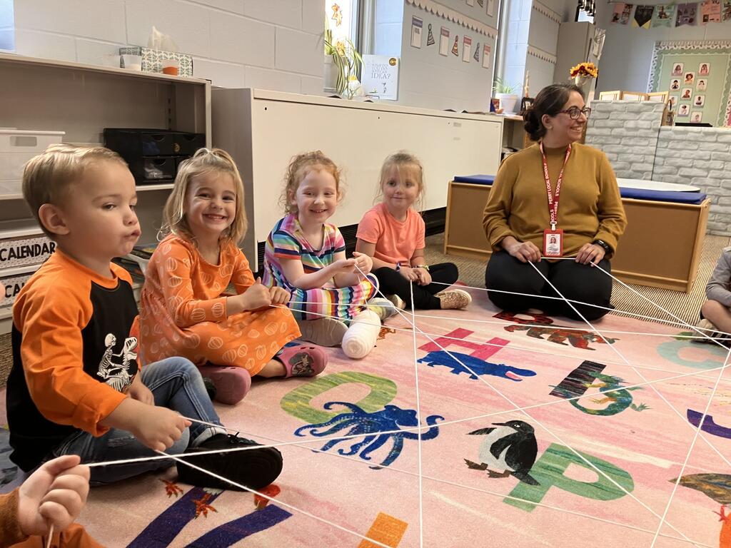 We learned that a team is a group of people that works TOGETHER! Our class is a team and demonstrated this by working together to make a spider web out of yarn. Everyone had to hold their piece of the yarn to ensure our web wouldn't fall apart. We practiced each day and even though this task was challenging at first we got better each day!