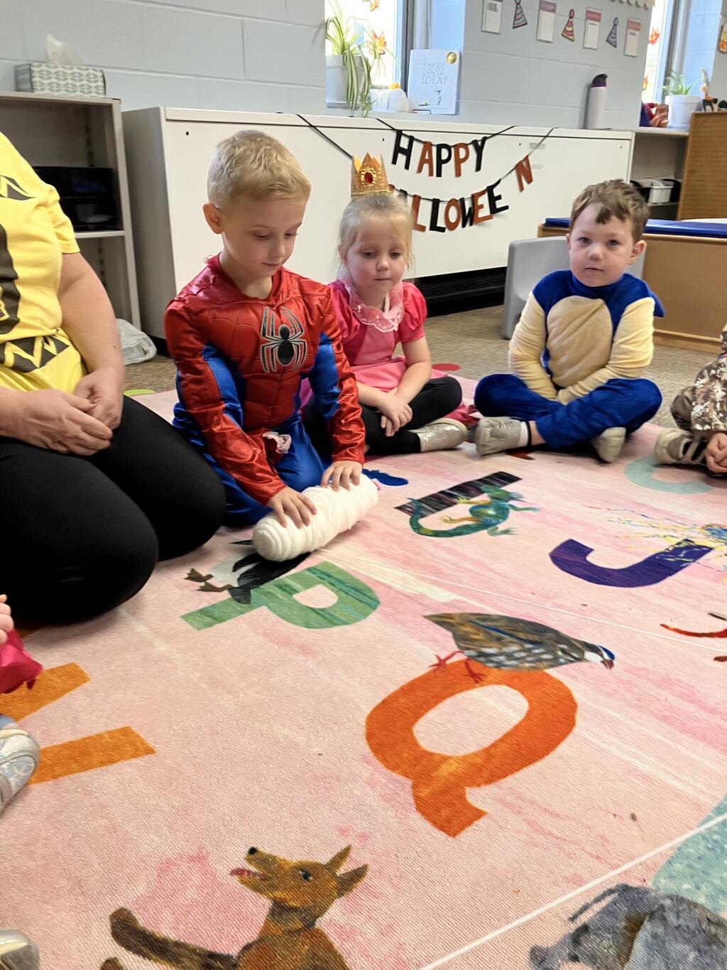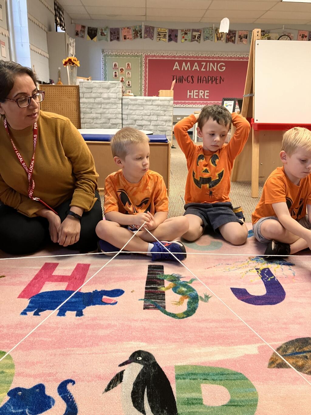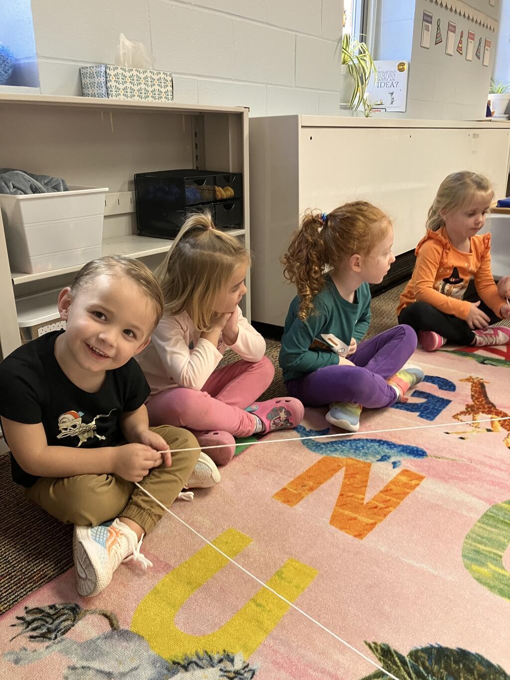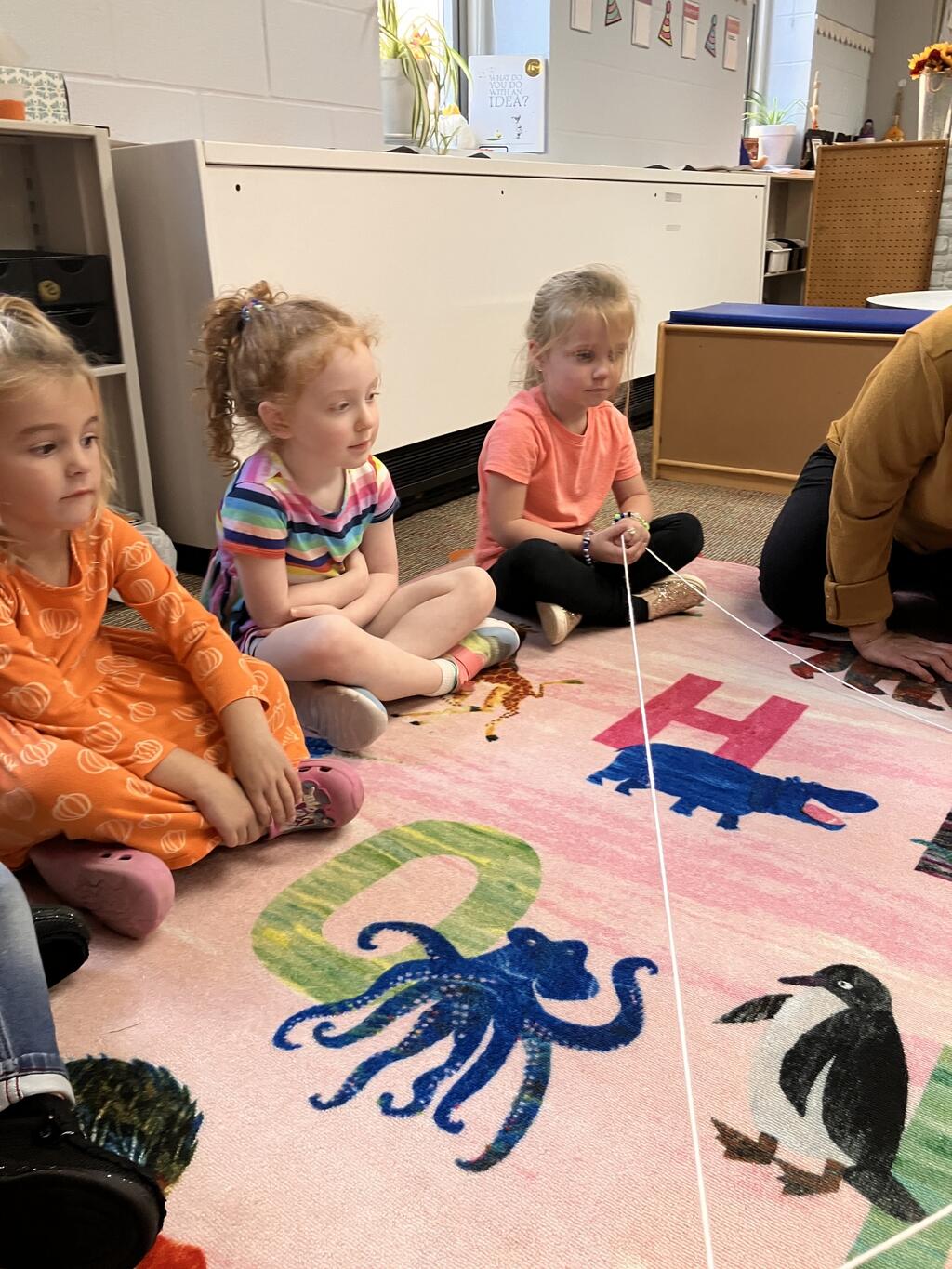 We learned that a team is a group of people that works TOGETHER! Our class is a team and demonstrated this by working together to make a spider web out of yarn. Everyone had to hold their piece of the yarn to ensure our web wouldn't fall apart. We practiced each day and even though this task was challenging at first we got better each day!