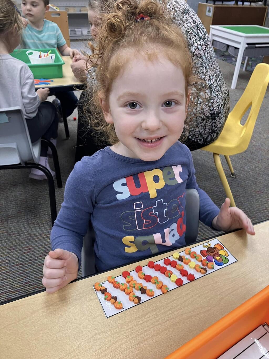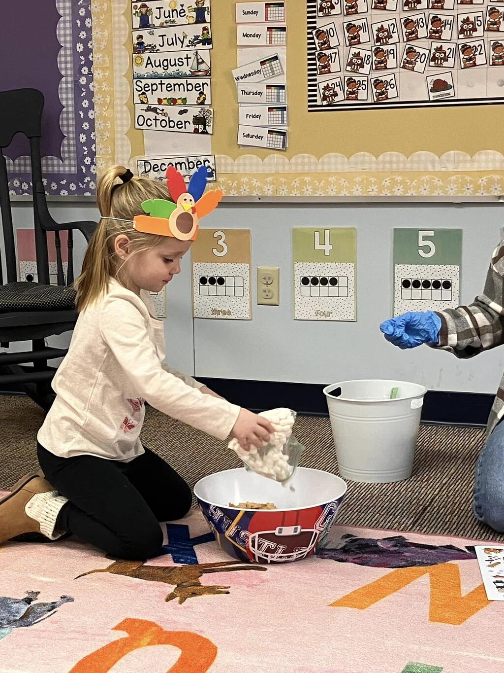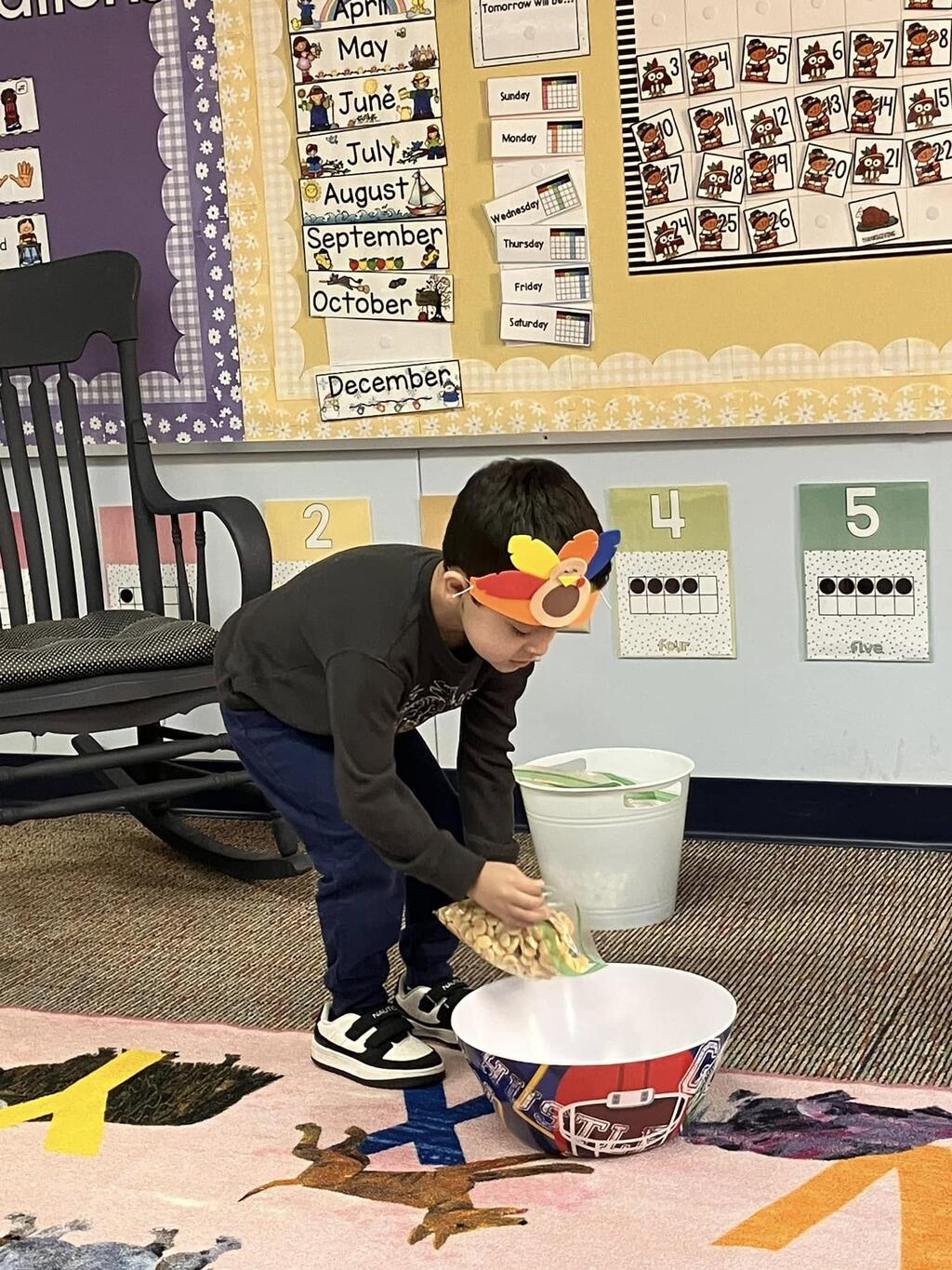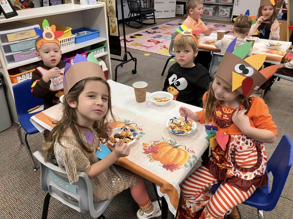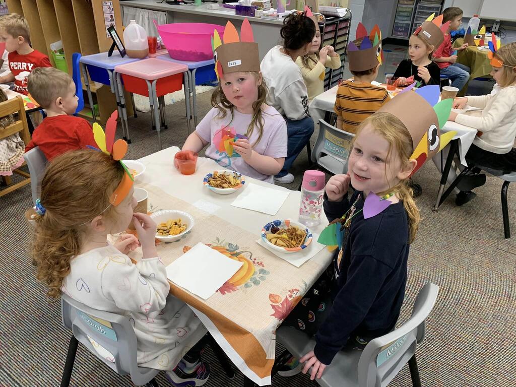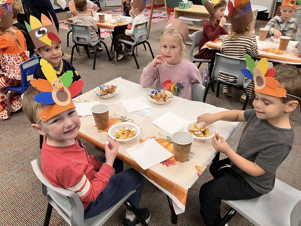 Our PreK students were celebrating Thanksgiving, friendships, learning rhyming with pies, turkey patterning, counting sensory activities, and so much more!