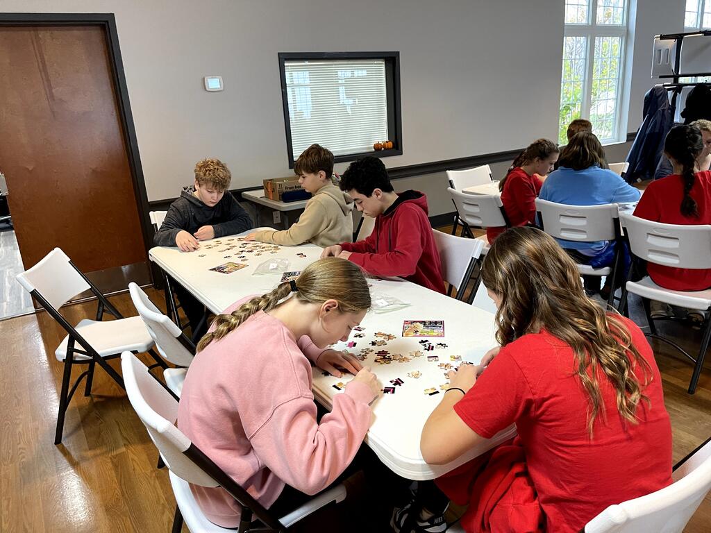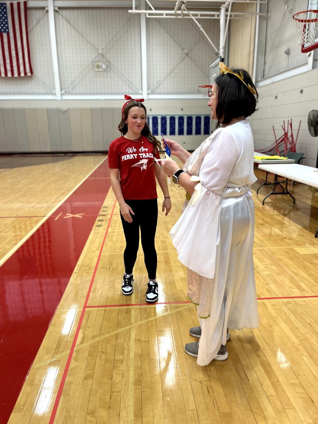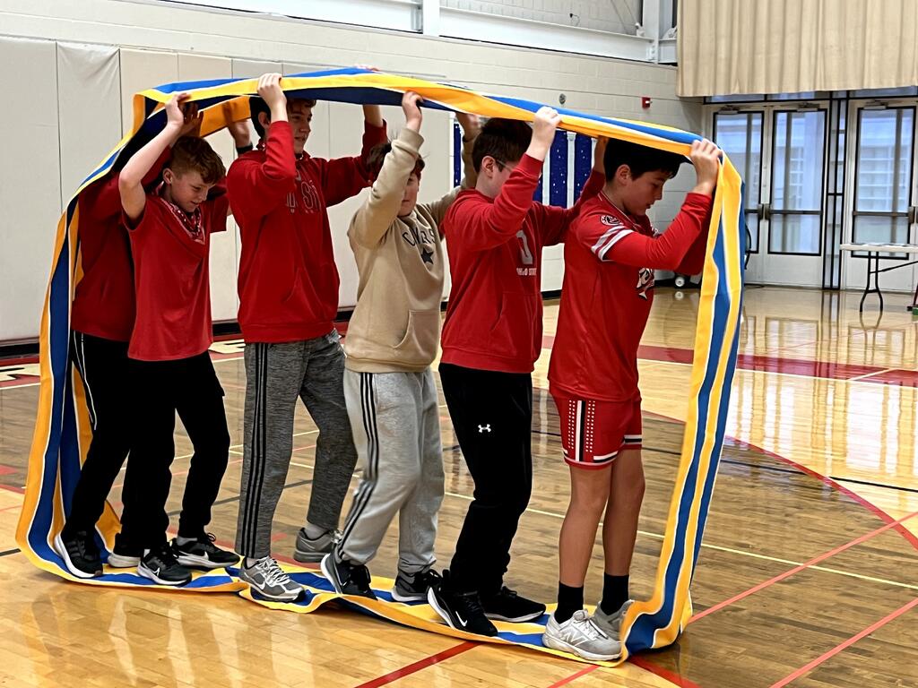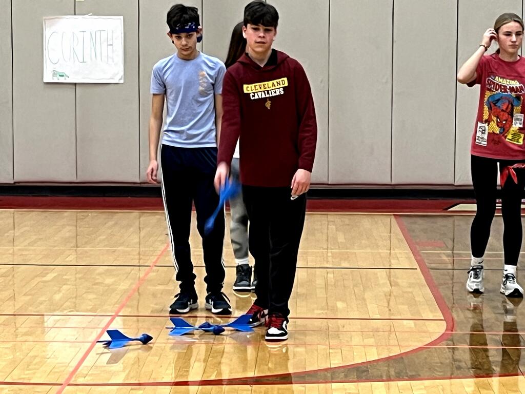 To wrap up their unit on ancient Greece in Mrs. Rayner's class, 7th graders worked on building community through friendly competition in their own Greek Olympics and by participating in activities organized by the Senior Center!