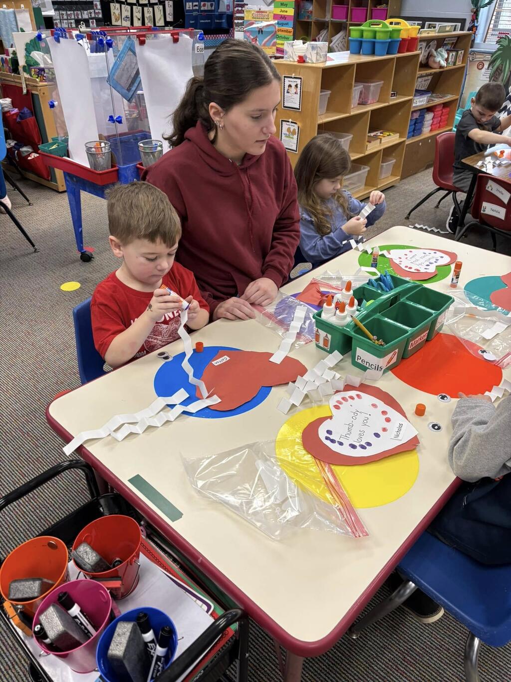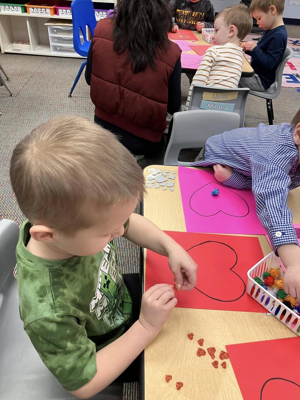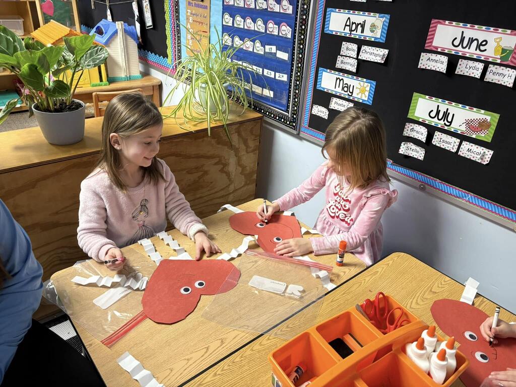 PSL volunteers visited the PreK classes for some valentines fun including reading, crafts, and activities!