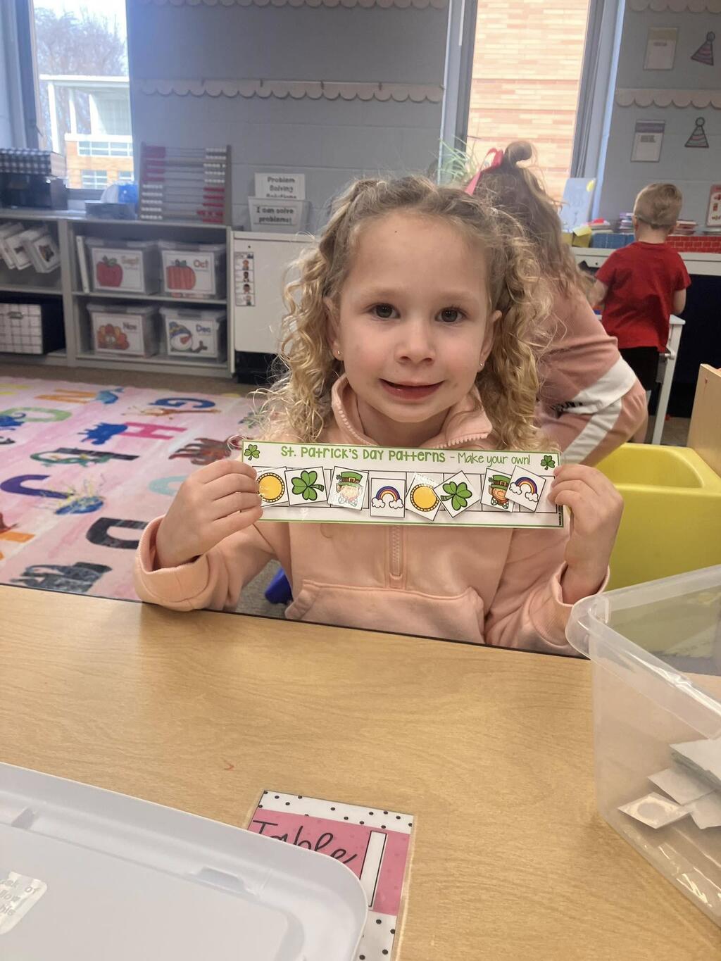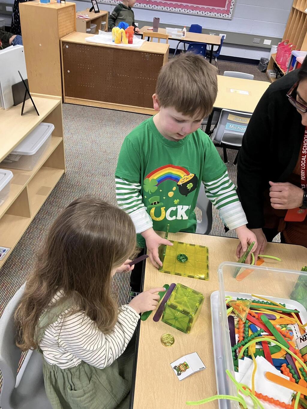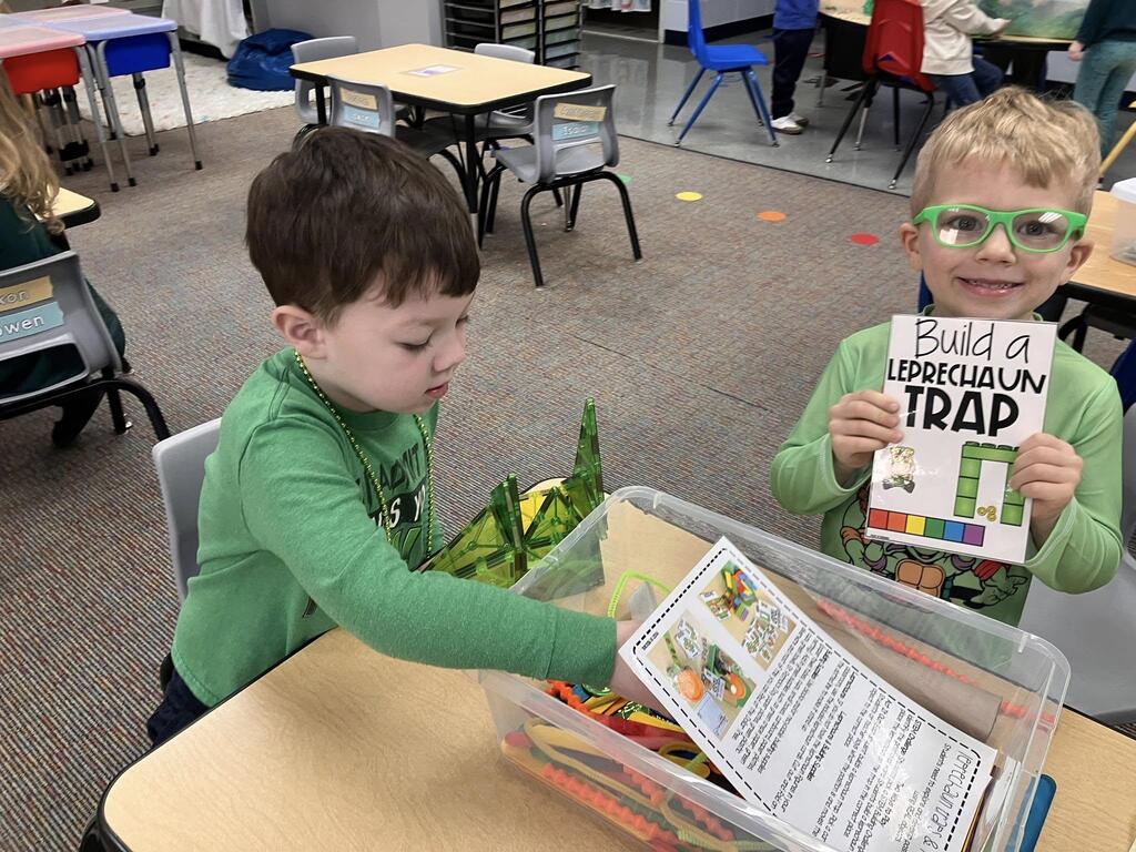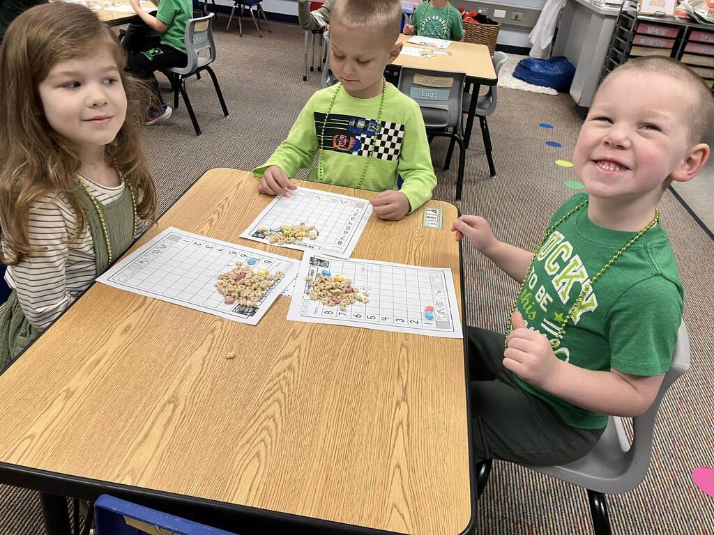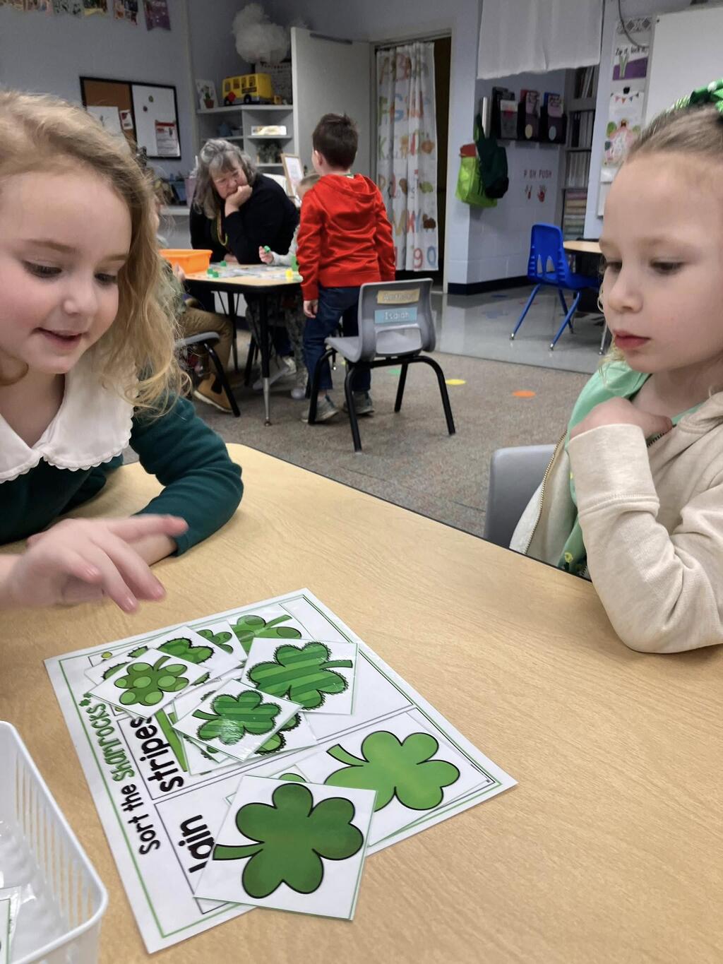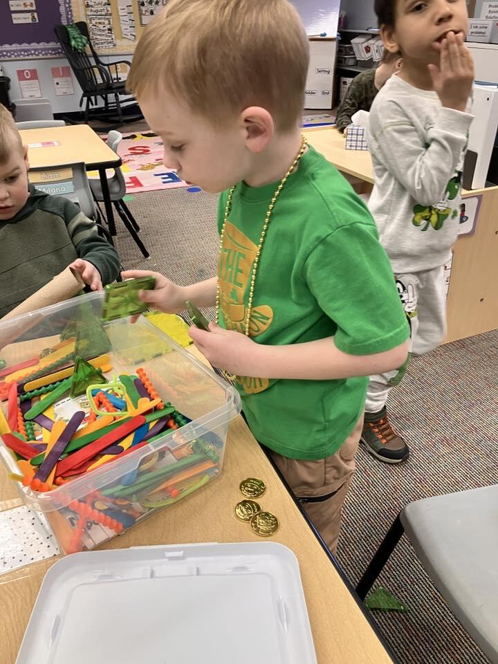 We had fun learning about the color green, patterning, counting gold, sorting, the walking rainbow science experiment, and building leprechaun traps!