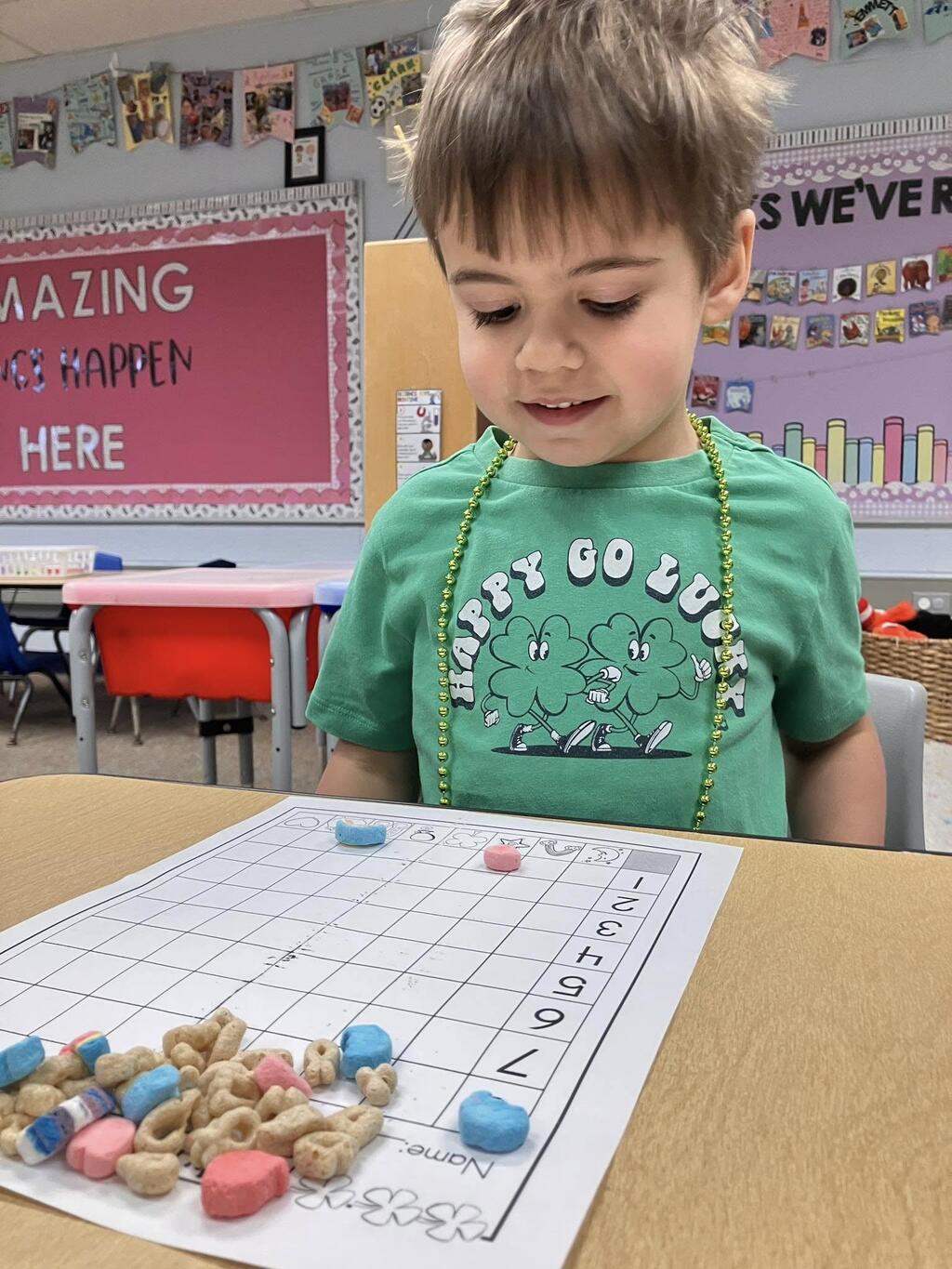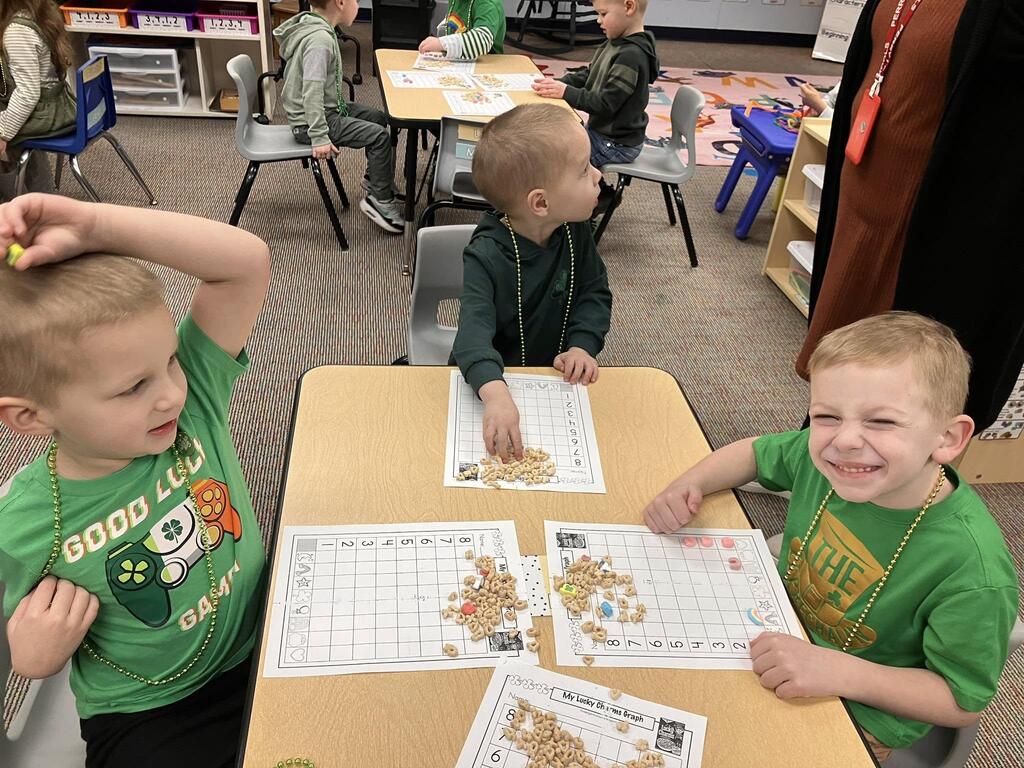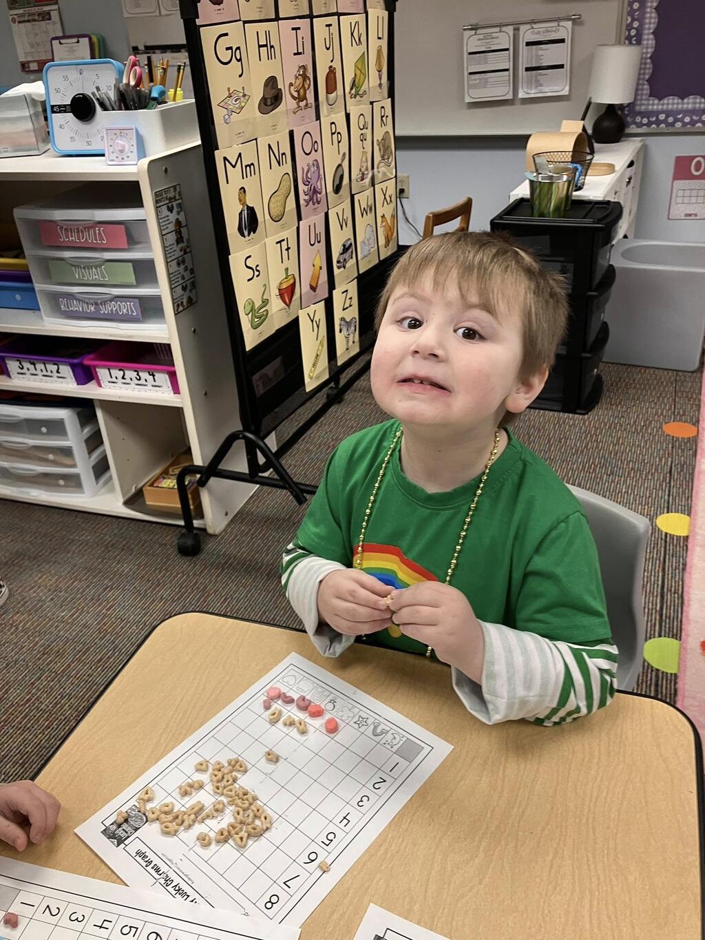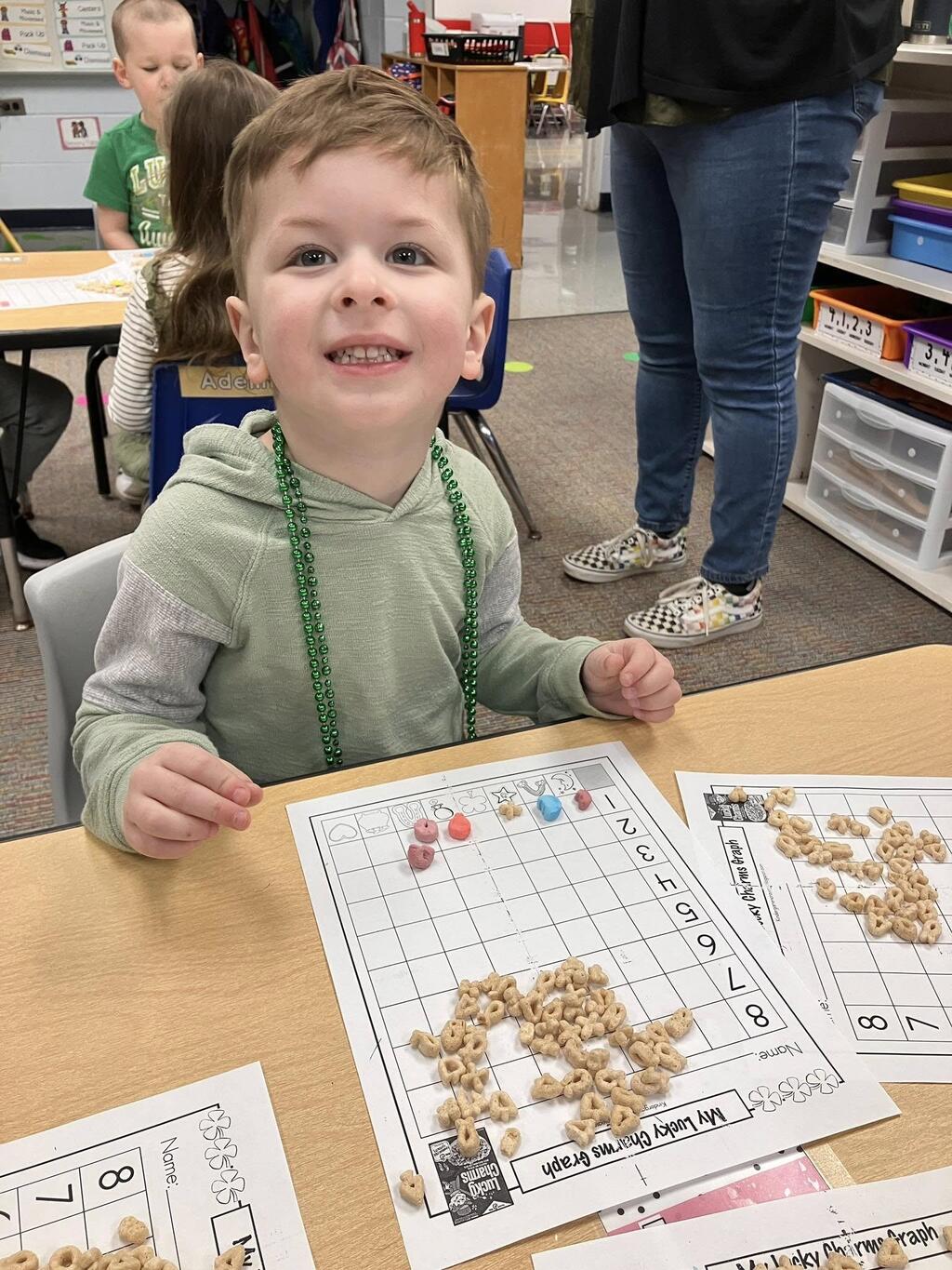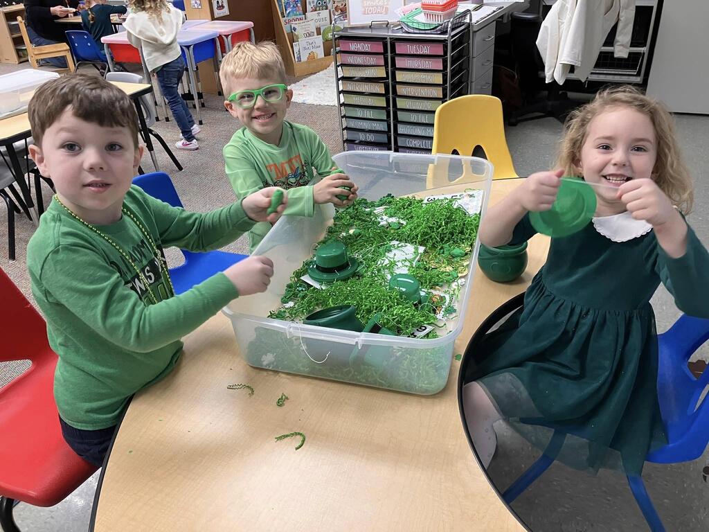 We had fun learning about the color green, patterning, counting gold, sorting, the walking rainbow science experiment, and building leprechaun traps!