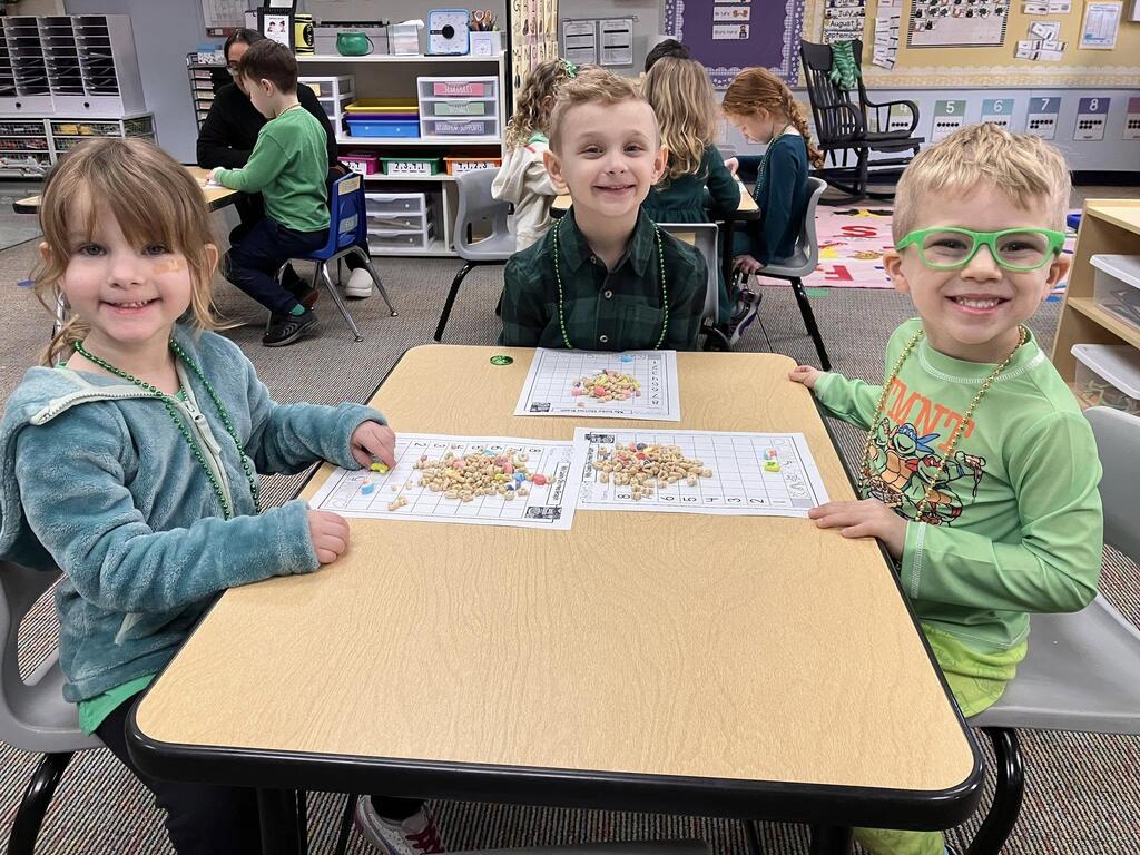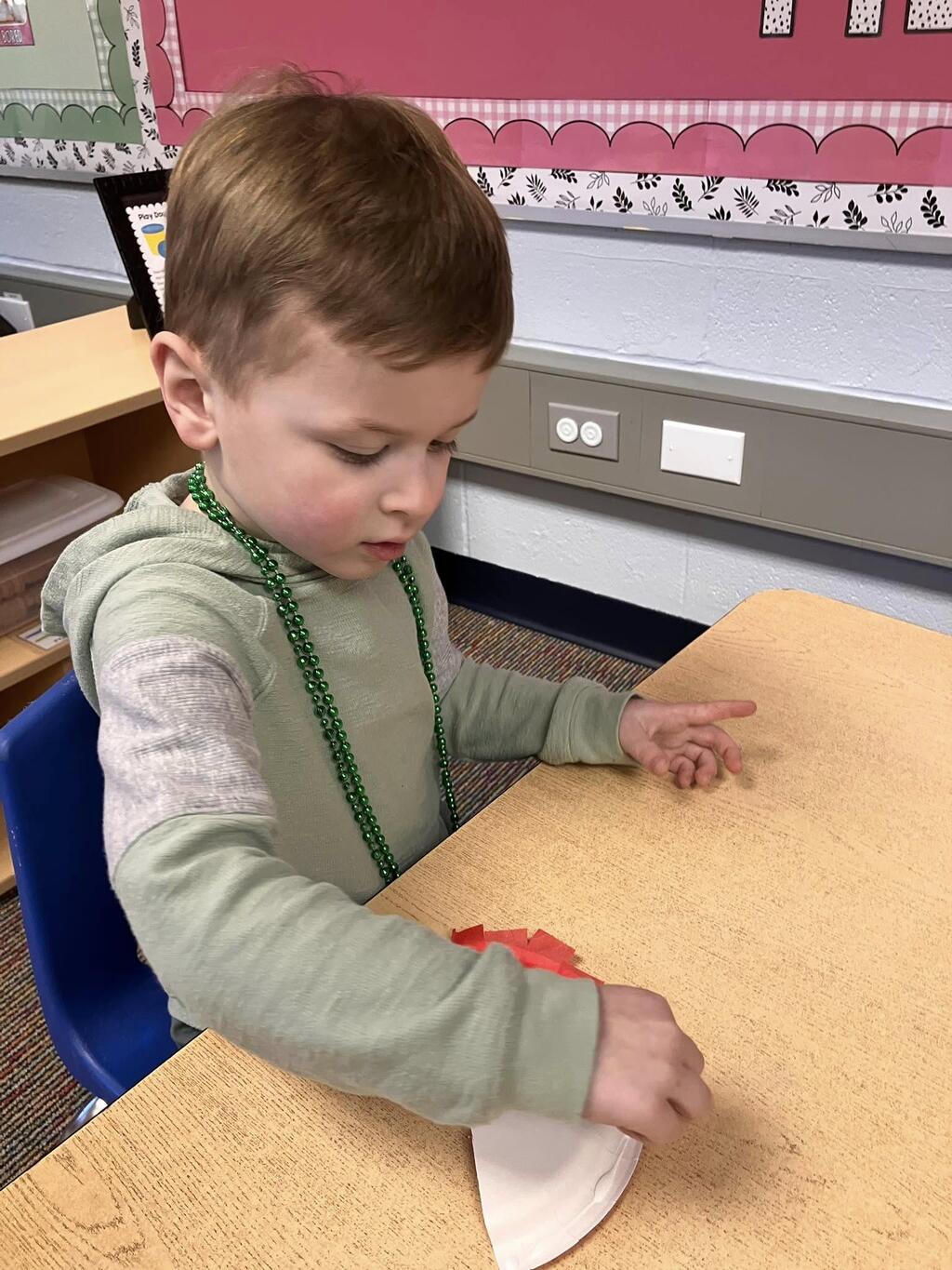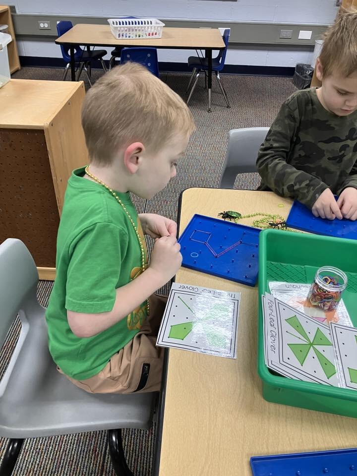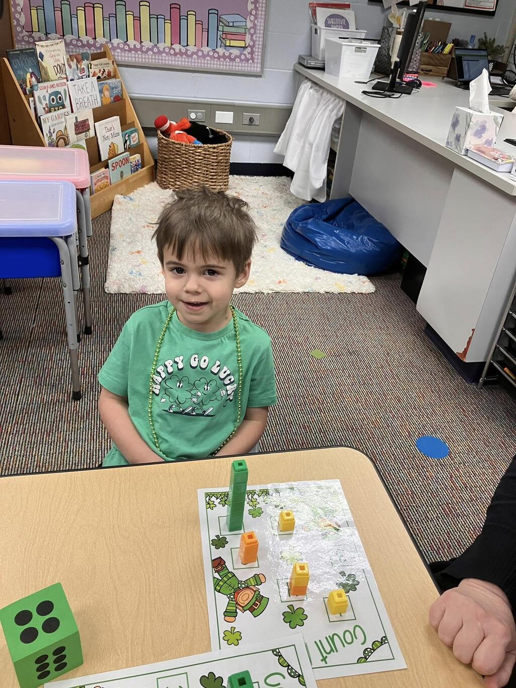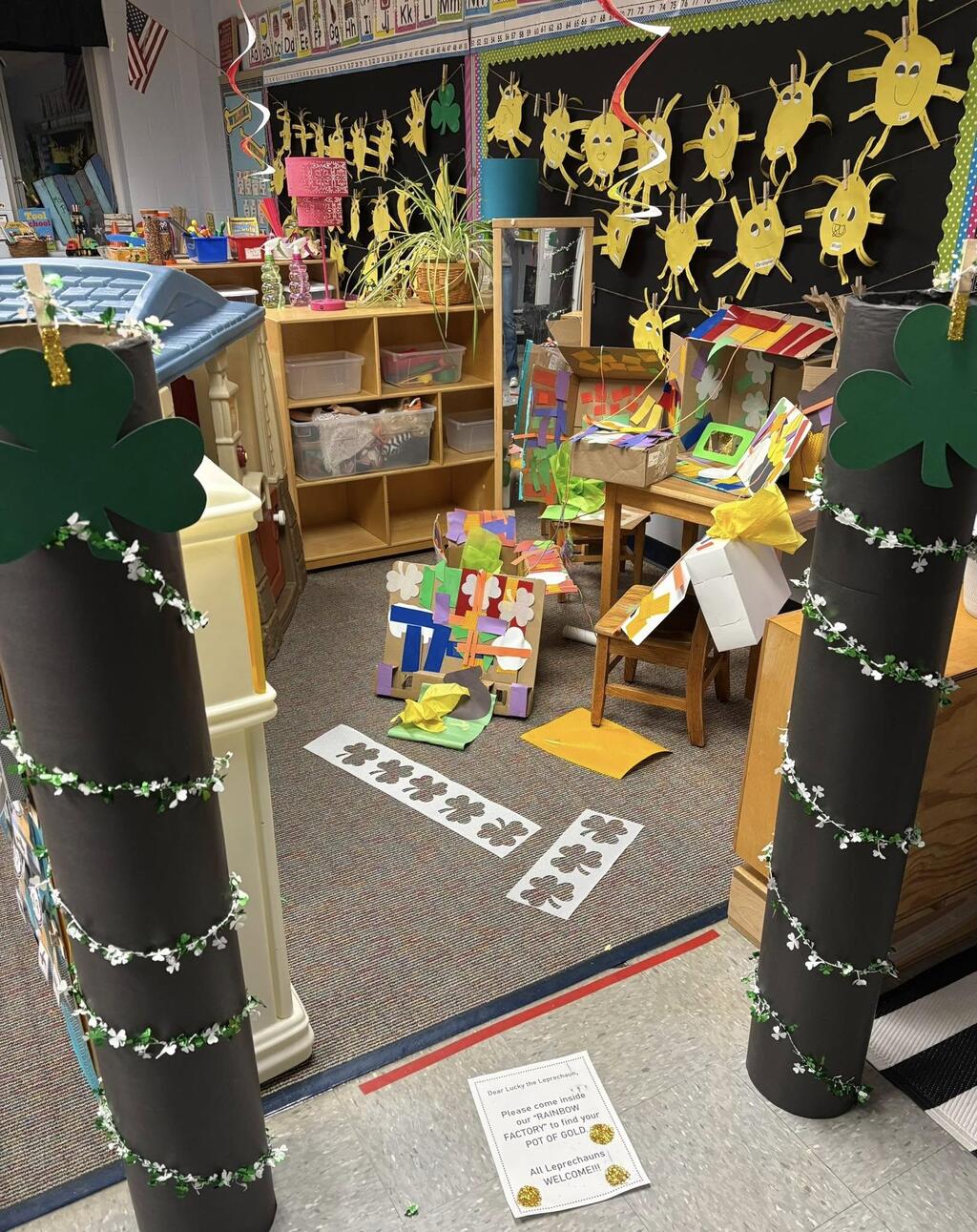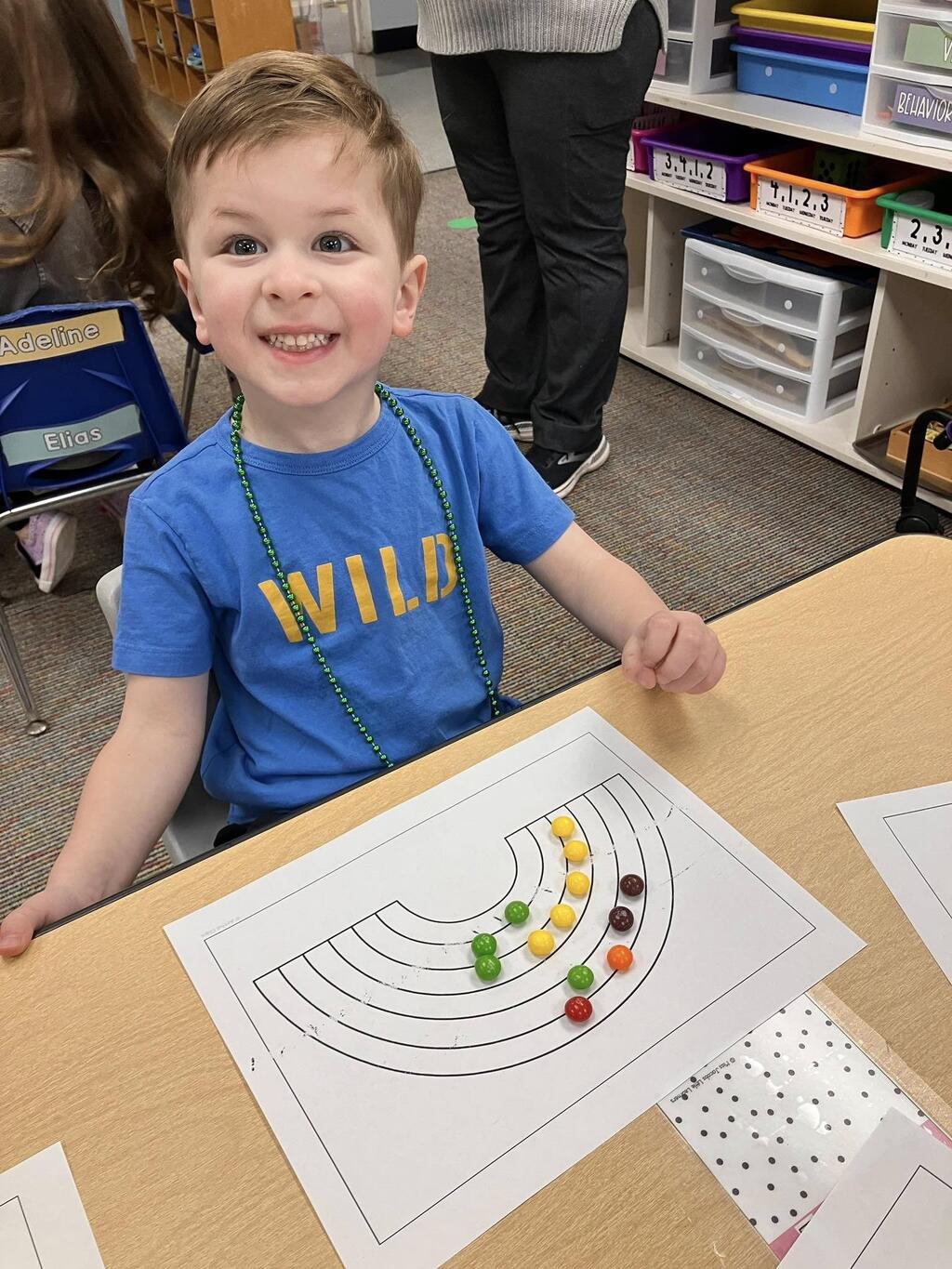 We had fun learning about the color green, patterning, counting gold, sorting, the walking rainbow science experiment, and building leprechaun traps!
