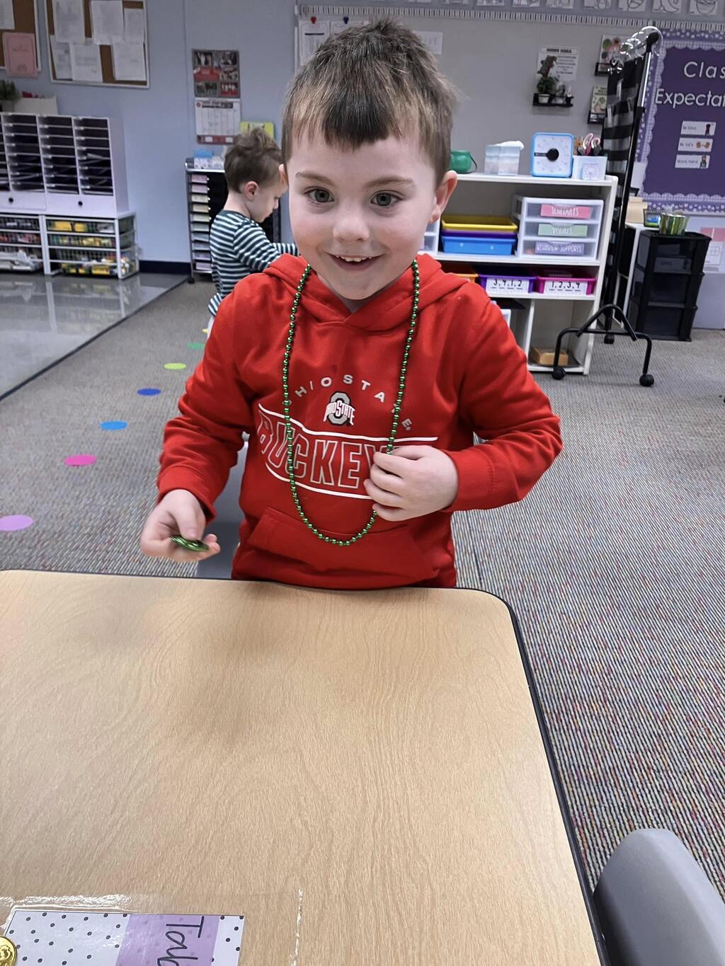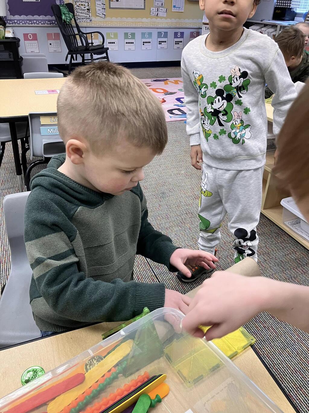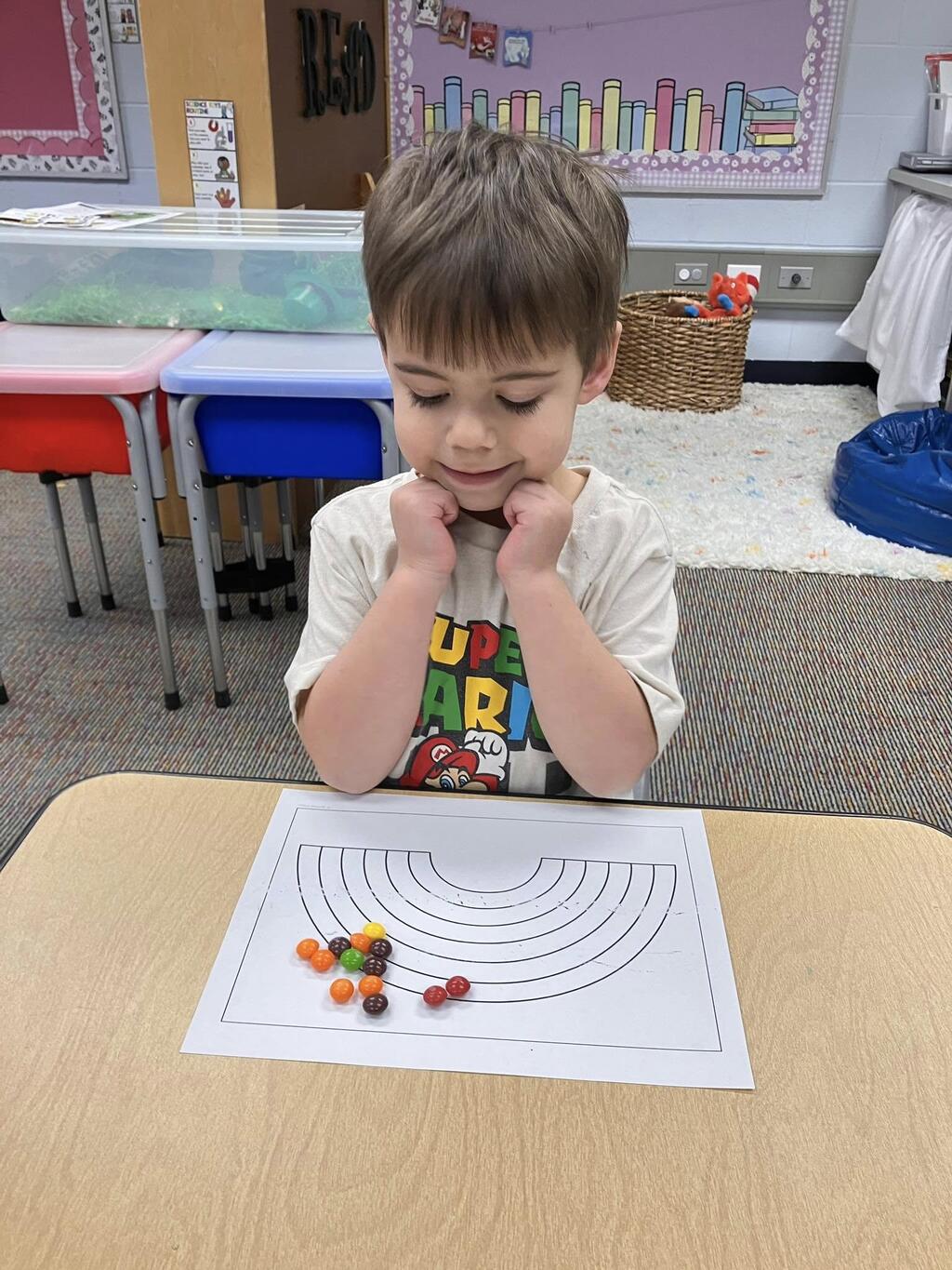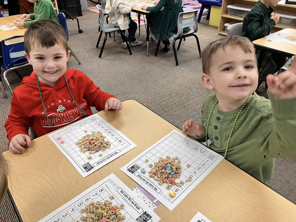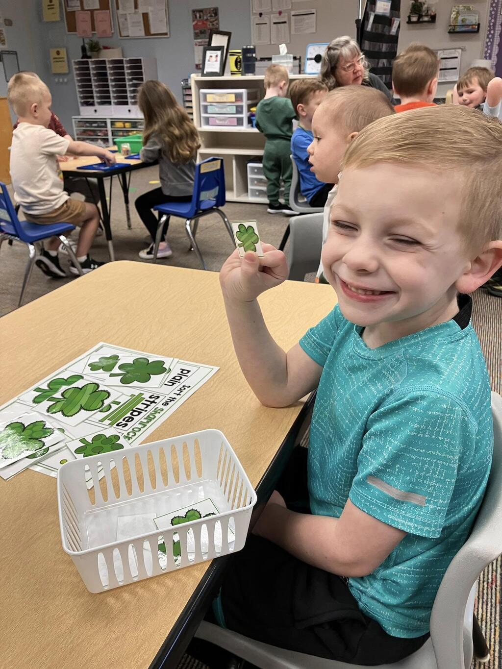 We had fun learning about the color green, patterning, counting gold, sorting, the walking rainbow science experiment, and building leprechaun traps!