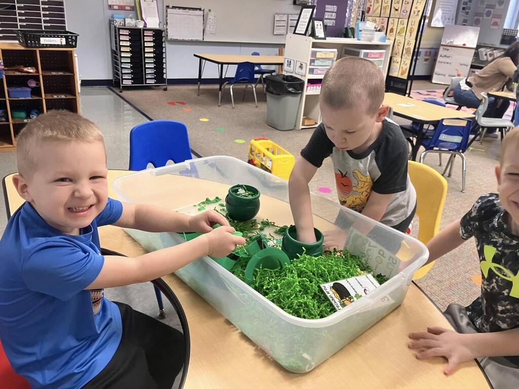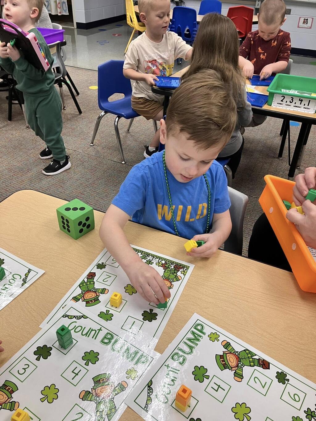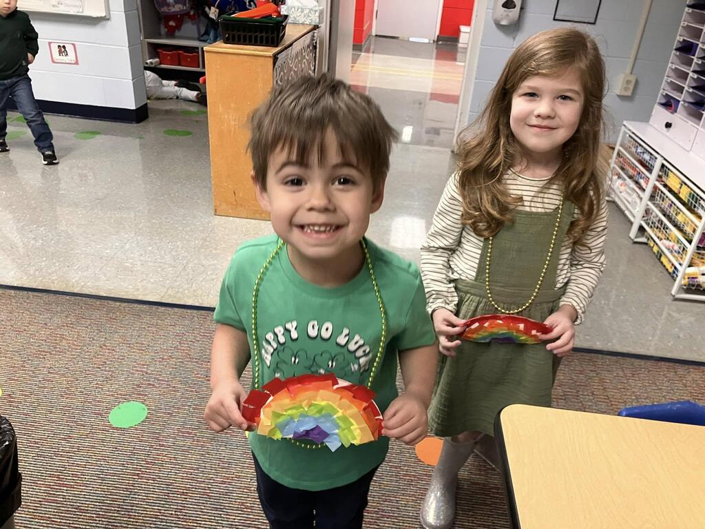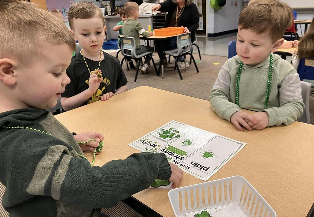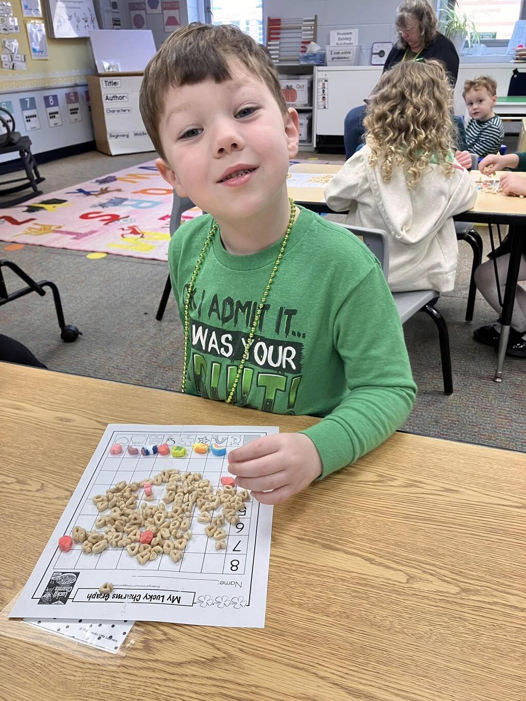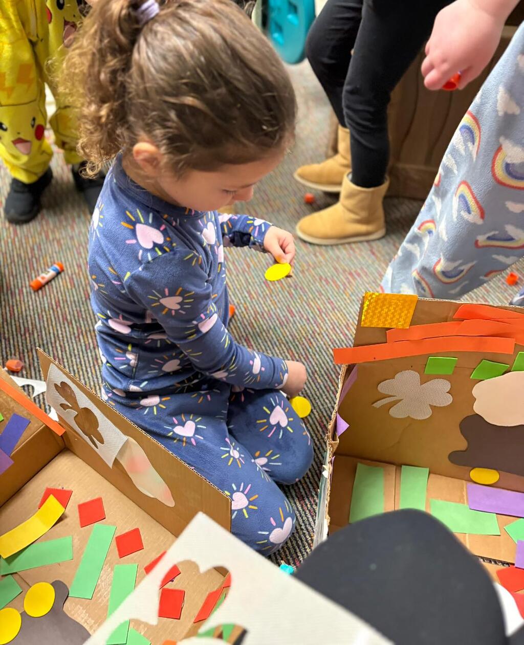 We had fun learning about the color green, patterning, counting gold, sorting, the walking rainbow science experiment, and building leprechaun traps!