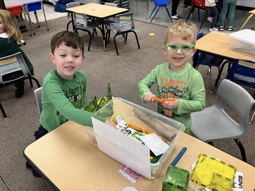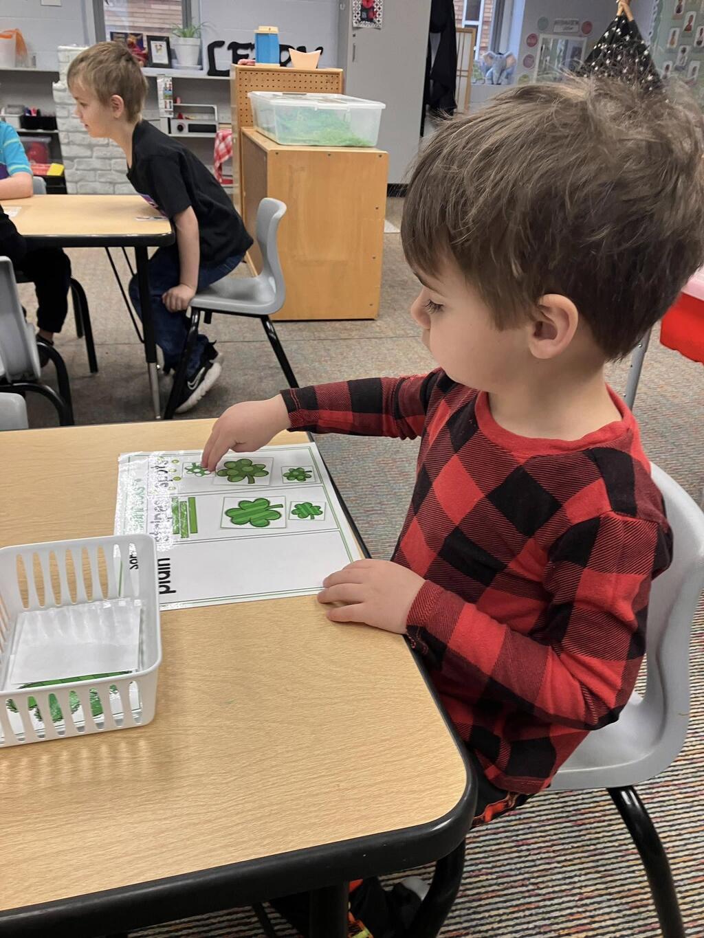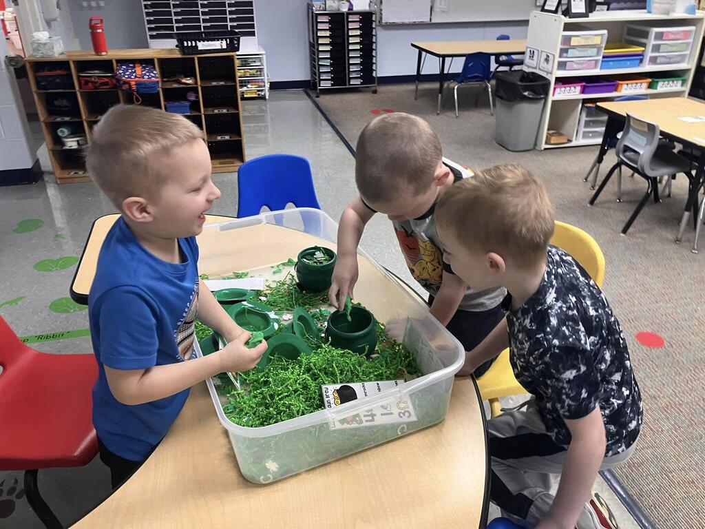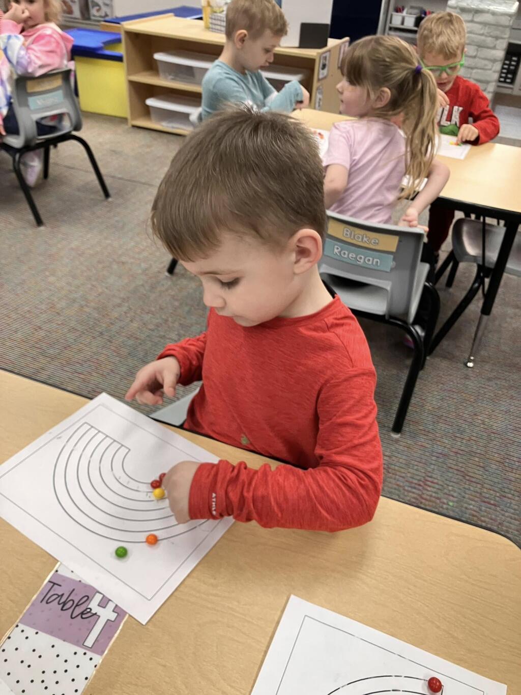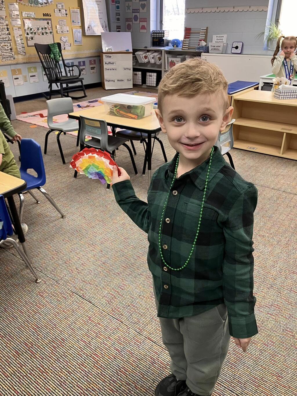 We had fun learning about the color green, patterning, counting gold, sorting, the walking rainbow science experiment, and building leprechaun traps!