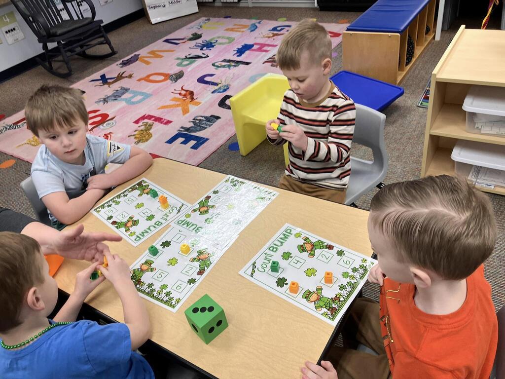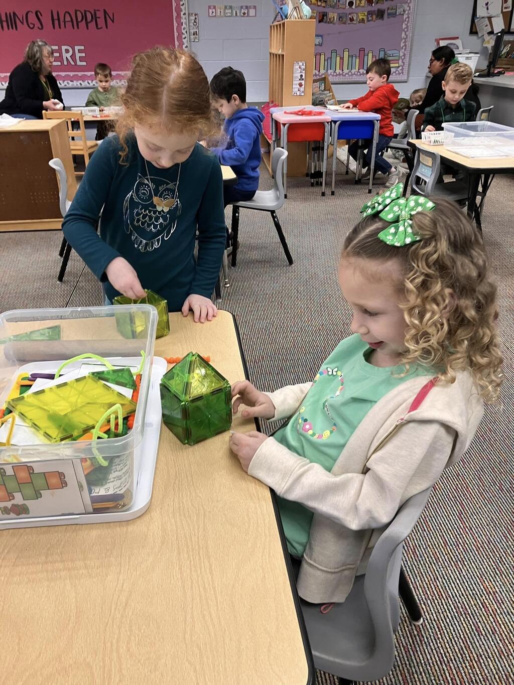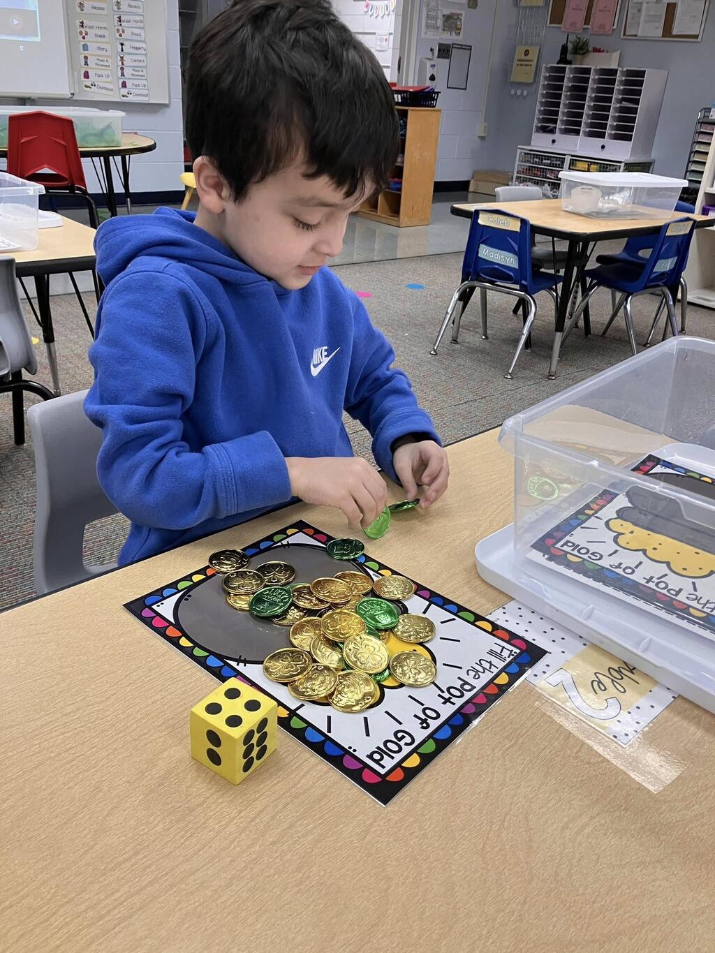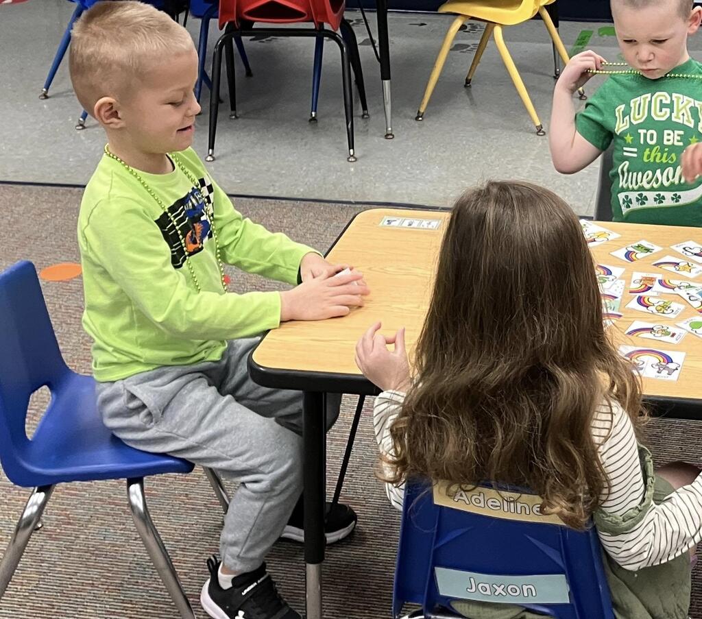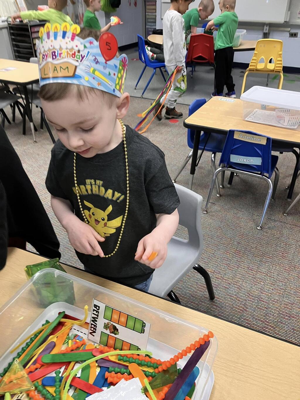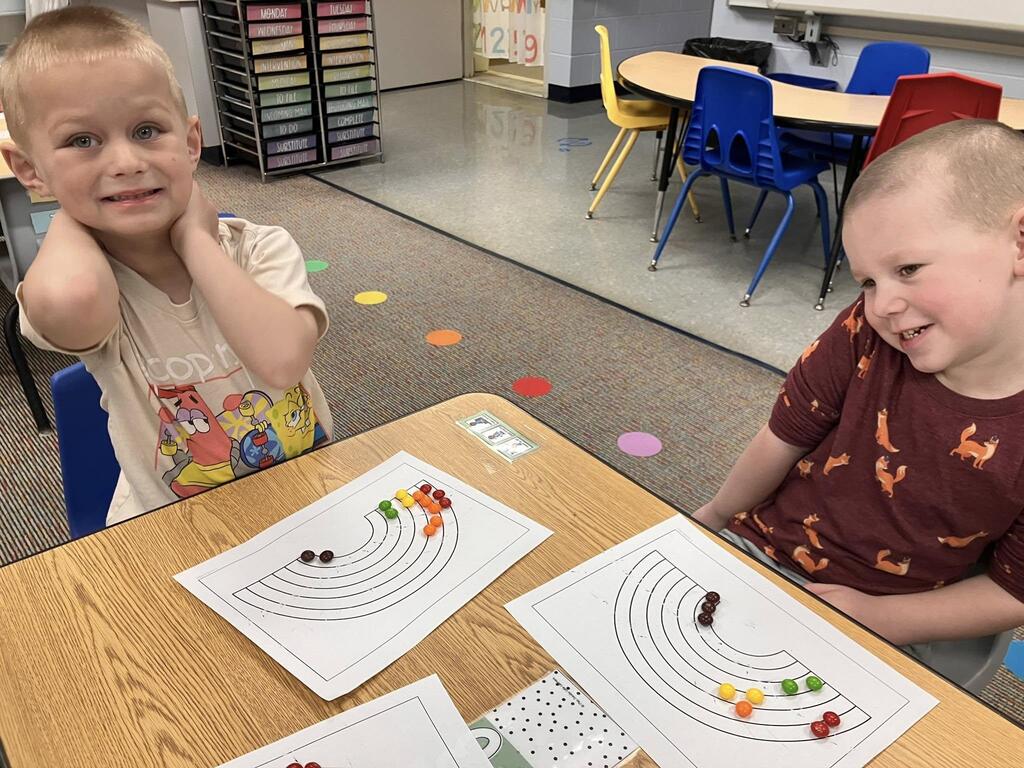 We had fun learning about the color green, patterning, counting gold, sorting, the walking rainbow science experiment, and building leprechaun traps!