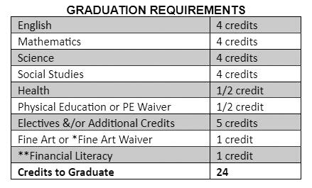 *Students must complete at least two semesters of fine arts taken any time in grades 7-8. Students following a careertechnical pathway are exempted from the fine arts requirement.